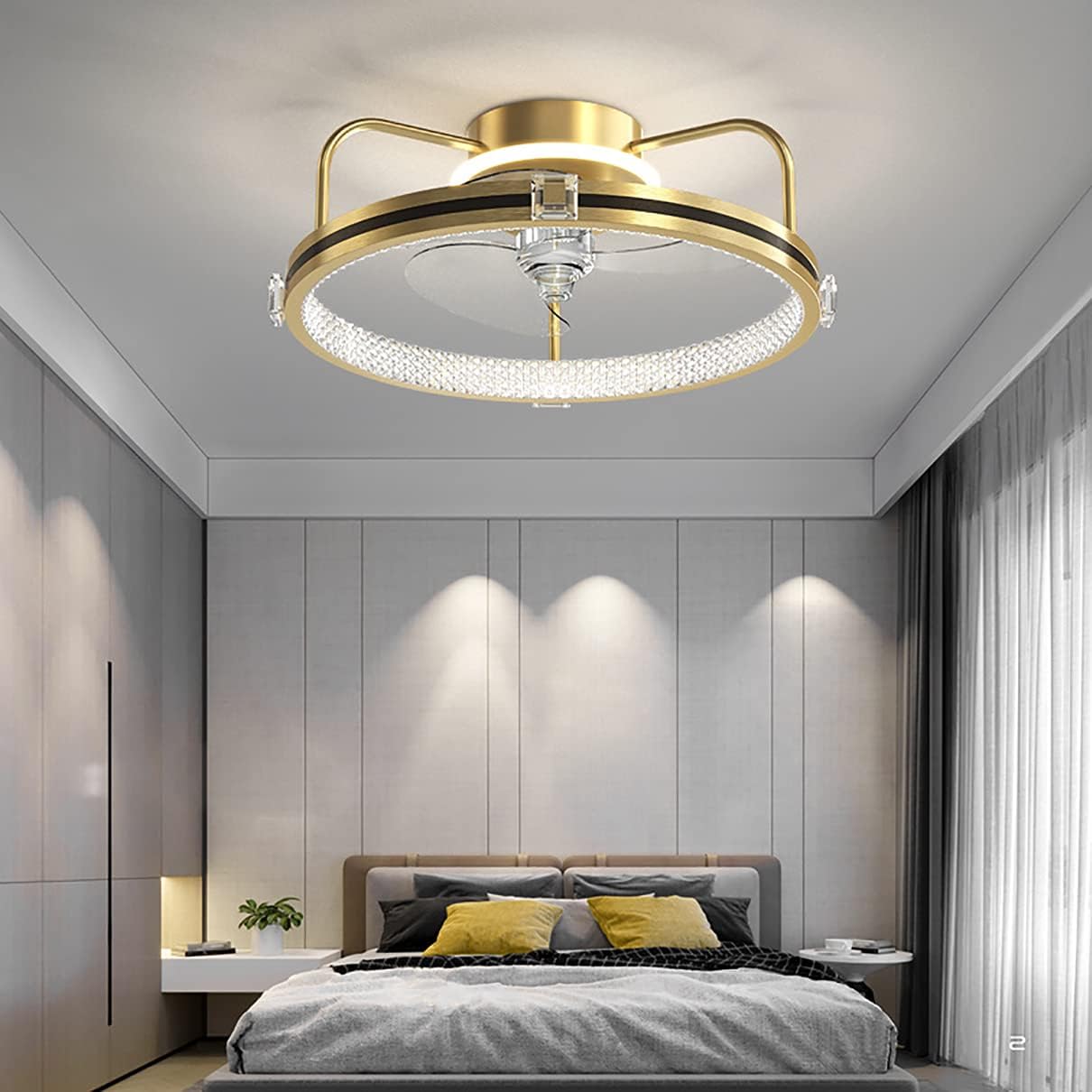 YUEGOO Fan with Ceiling Light,and Remote Control Crystal Silent 3 Speeds Bedroom Led Dimmable Fan Ceiling Light with Timer Modern Living Room Ceiling Fan Light