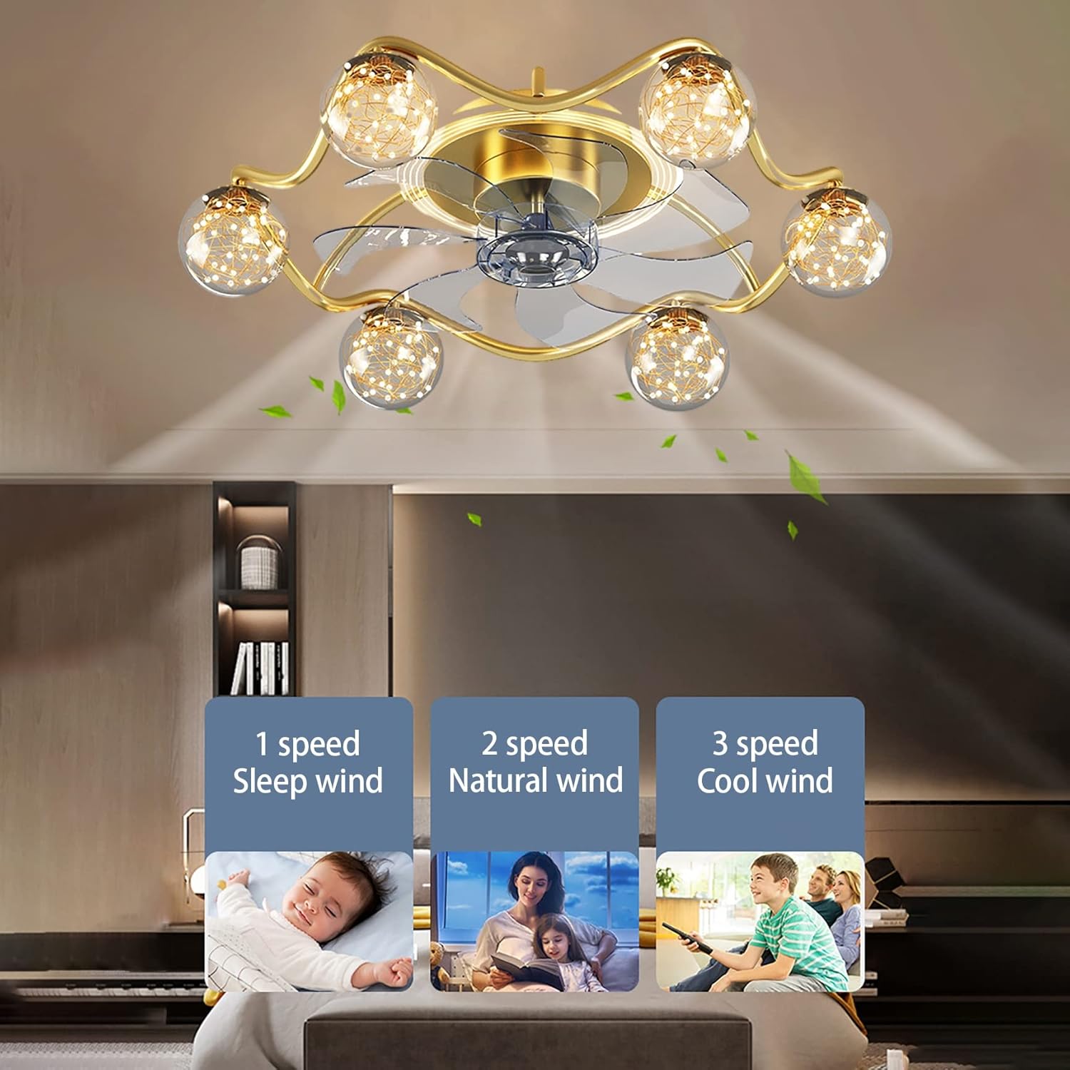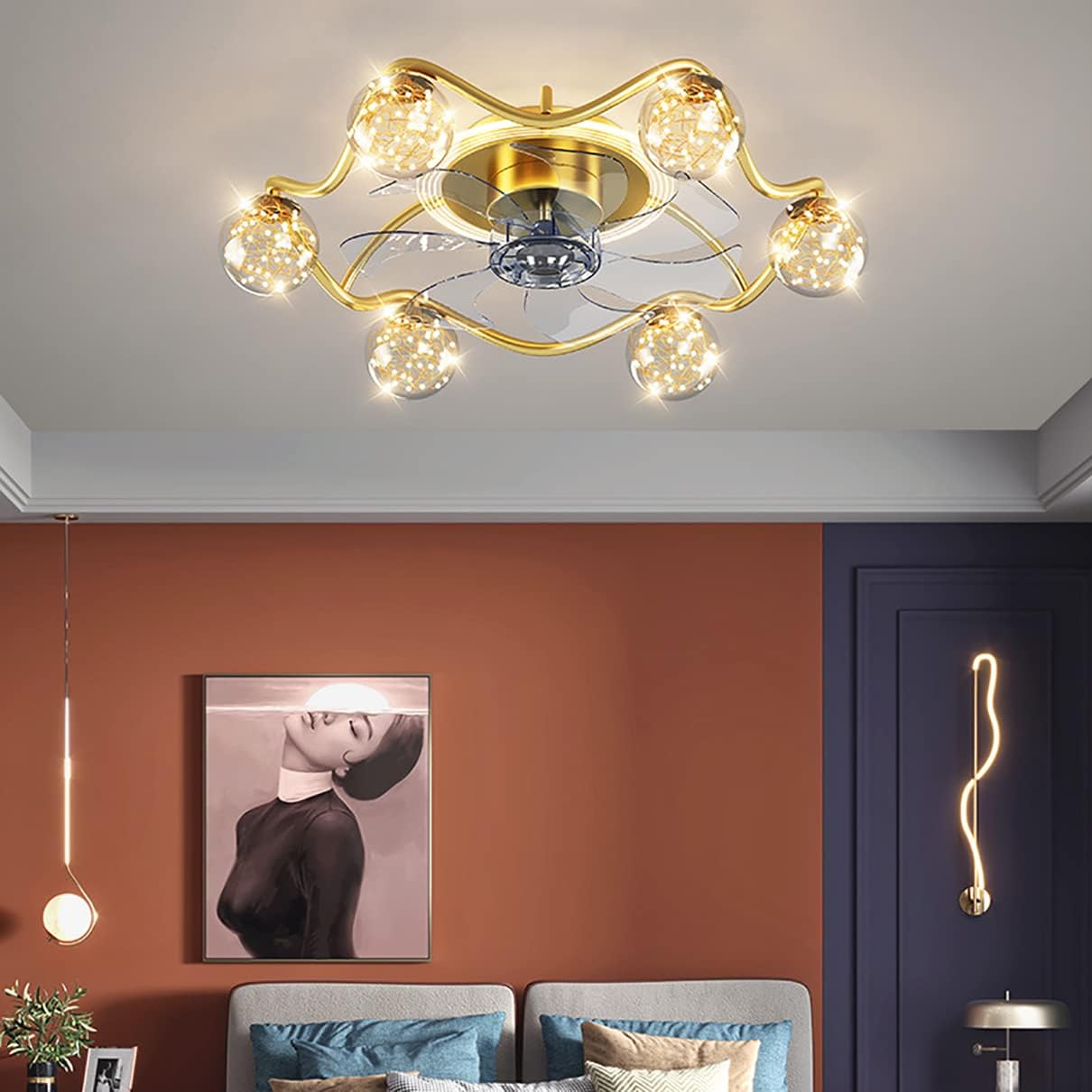YUEGOO Ceiling Fans with Lamps,Glass Ceiling Fan with Light and Remote Control Mute 3 Speeds Bedroom Led Dimmable Gypsophila Fan Ceiling Light with Timer 45W Modern Living Room