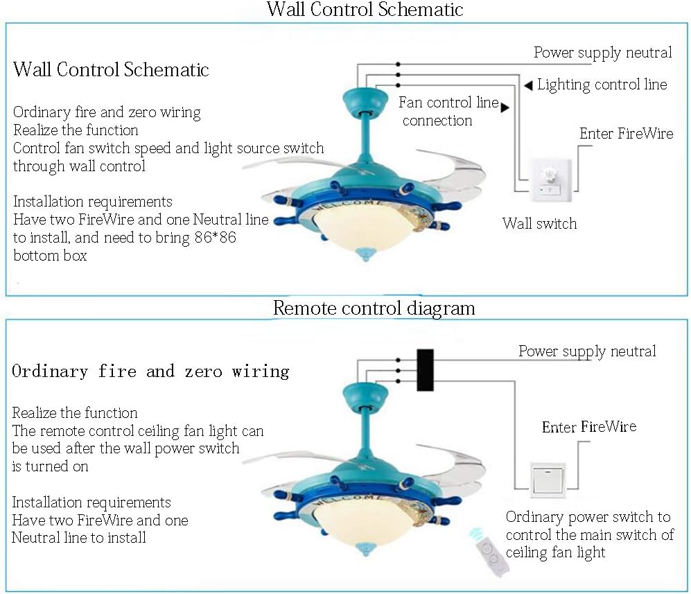 YUEGOO Ceiling Fans with Lamps,Ceiling Fan with Dimmable 48W Led Light and 3 X Blades for Living Room Restaurant Bedroom/Wall Control