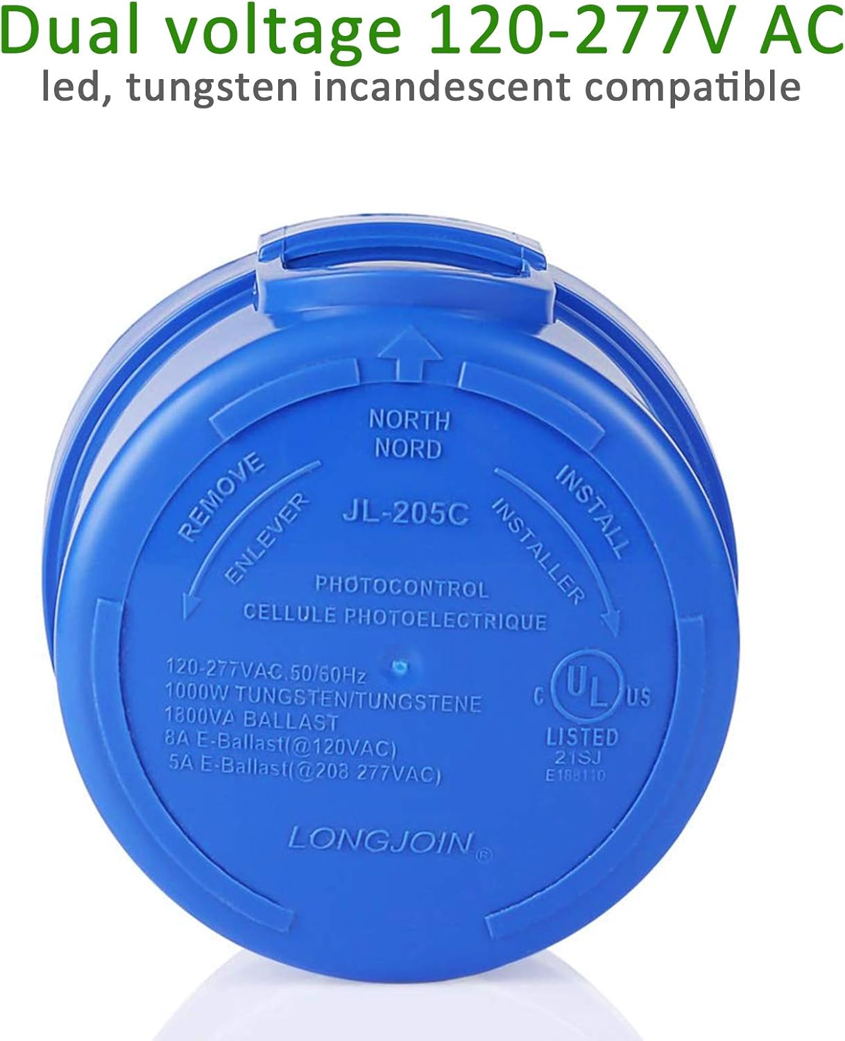 ●Rated Voltage:110-277VAC ●Material: high-impact thermoplastic housing ●Applicable :Voltage Range 105-305VAC ●Rated Frequency:50/60Hz ●Rated Loading:1000W Tungsten, 1800VA Ballast ●Power Consumption:1.5VA [3VA for –HP] ●On/Off Level:6Lx On 50Lx Off ●Ambient Temp:-40℃ ~ +70℃ ●Related Humidity:99% ●Waterproof level:IP65 ●Locking-type: NEMA plug(Three Terminal locking-type plug) ●Maximum Compatible with 500W street light pole light ●Package:1* photocell sensor switch