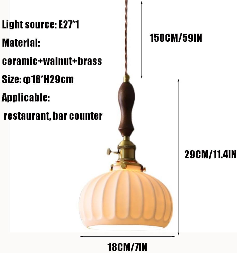 Welcome to Our Store! We Only Talk About Quality!Products Technical SpecificationsProduct Name: ChandelierProduct Style: Modern MinimalistColor: White (As Shown in the Figure)Material: Ceramic+Brass+WalnutProduct Size:Diameter: 18Cm/7In, Height: 29Cm/11.4InHanging Length: 150Cm/59In (Length Adjustable)Su Suction Diameter: 10Cm/3.9InUse Space: 5-10 Square MetersLighting Information: E26/E27 (Excluding Light Bulb)Voltage: 110-240VCertification: 3C Certification Ul Certification Ce CertificationSpecific Use: above the Kitchen Island/Above the Kitchen Sink/Above the Counter/Above the Table/Top of the Restaurant/Above the Bedroom/Above the Room/Above the Farmhouse/Above the High Inclined Ceiling/Above the Bar/The Dining Room/Above the Exhibition Hall/Above the Hotel/Coffee Coffee/Coffee above and above the Office.