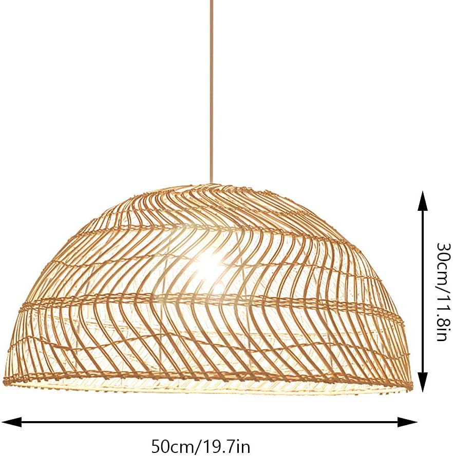 Light information:Style: vintage style, hand wovenMaterial: bamboo rattan + metalColor: naturalsize:The length is 50 cm/19.7 inches, the height is 30 cm/11.8 inchesInput voltage: AC 110-240VHanging line length: 100cm/39.4in (adjustable)Bulb Information: LED/Incandescent (without bulb)Lamp holder: E27/E26Number of light sources: 1Applicable area: 5-20 square metersIncluded in the package: chandelier*1Applicable scene: living room/dining room/bedroom/office/villa/bar/club/club, etc.notes:1. Please be careful not to pull the wires when opening the package, otherwise it may cause poor connection.2. Do not turn on the power until your light is fully assembled.3. To reduce the risk of fire, electric shock, or personal injury, be sure to turn off the power and unplug it before replacing the bulb and let it cool down. When the power is turned on, do not touch the bulb or look directly at the lit bulb.4. Please use it in a dry environment. Please cut off the power supply when cleaning or replacing the bulb.We are committed to providing quality after-sales service. If you are not satisfied with the product, please contact us via Amazon mailbox, we will provide you with a satisfactory solution within 24 hours.