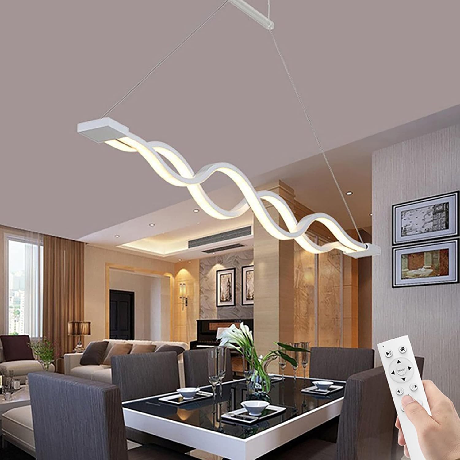 The design of this mid-century modern Chandelier island light is inspired by nature and the joy harvest. It features a den linear hard rod suspended with sixteen smooth frosted glass globes irregularly distributed in all directions rod, like autumn fruits hanging on branch. Simple elegant, works charm. Modern fixture. This fixture widely used commercially restaurants, cafes, workshops, hotels, craft rooms, etc., as home decoration in: dining room, living kitchen, entryway, etc. 9 Lights Chandelier for Kitchen Islands. Islands has nine 60W lamp holders suitable 12-25 square meter area. actually suits homes any style perfect ornament your household. Glass Shade: made pure manual ground sandstone, high quality, makes more soft not dazzling. Lamp Type: Voltage: 120-110V, G9*9 base, warm (bulb included), compatible standard bulbs, LED, incandescent, compact fluorescent halogen bulbs max 60W.