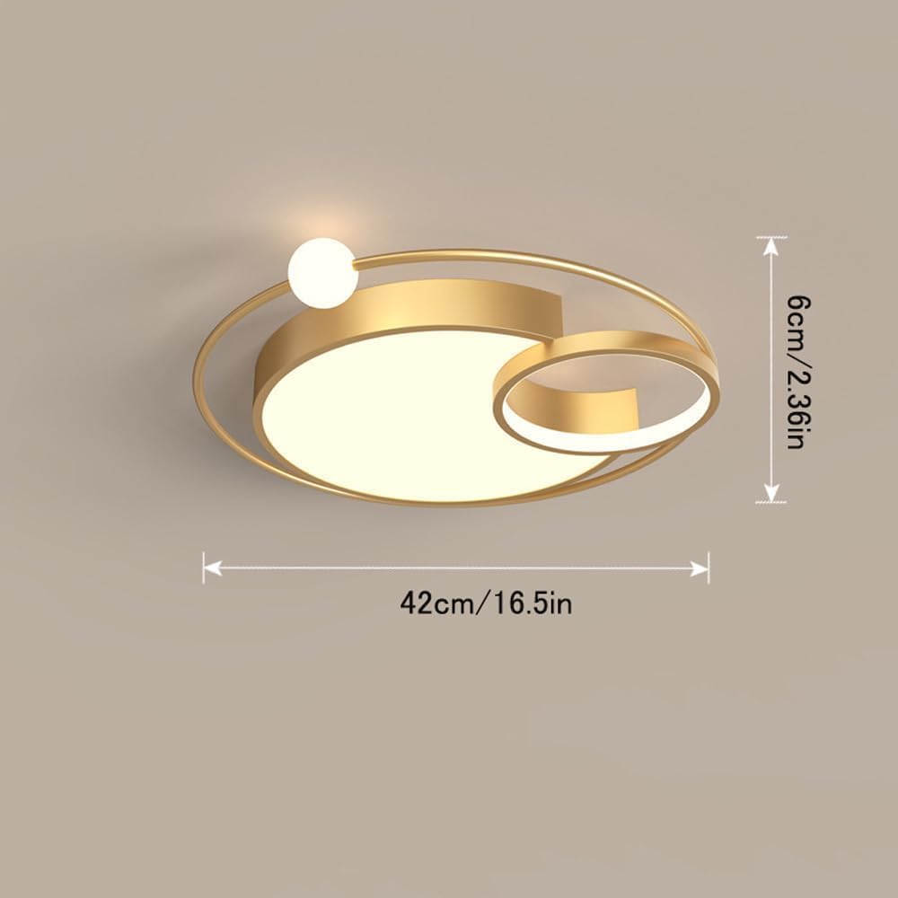 Specification:Indoor household recessed ceiling lightMaterial: Aluminum +AcrylicCeiling light color: black white goldLamp body size:Diameter: 42cm/16.5 inchesThickness: 6 cm/2.36 inchesLighting area 8㎡ -12㎡Wattage: 34 wattsLight color: three color changing light (white light neutral light warm light)Light source: LED S-COPE of application: tatami mats dining room study wedding room children's room tatami mats dining room study wedding room children's room corridors bedrooms exhibition halls balconies theme hotels guest rooms boarding houses cafes and other placesPackage Included]: 1* Ceiling light1* Ceiling lightAll accessories are included in the package, and the light fixture can be assembled with a simple connection. You can install the chandelier anywhere. It's the perfect light fixture to install in the kitchen, dining room, living oom, foyers, entryway, and bedroom.