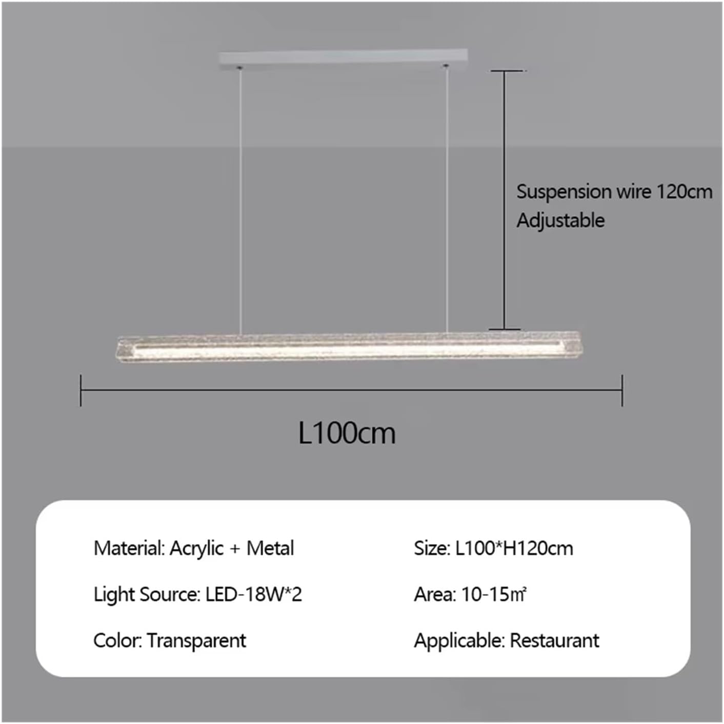 Light source: LEDLamp size: L100cm/L120cm/L150cmApplicable range: 10-20㎡Application scenarios: Dining room, bedroom, living room, etc.