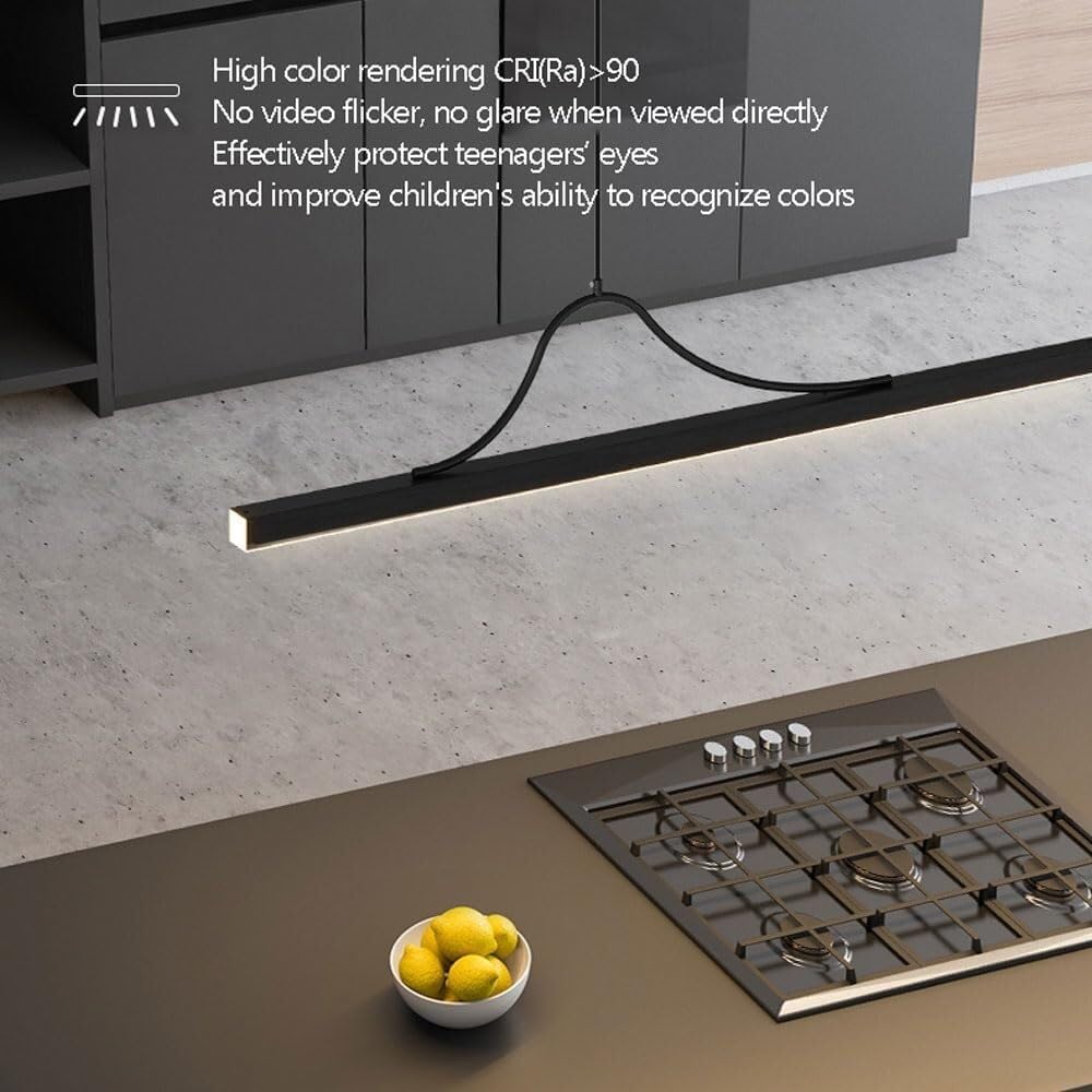 Product informationProduct name: ChandelierStyle: Nordic/SimpleUsage: indoor lightingMain material: aluminum + acrylicColour: BlackSize: L90CM/120CM/150CMHanging wire length: 120cm/adjustableBulb informationLight source: LEDLight source color temperature: remote control stepless dimmingPower: 90CM-36W, 120CM-48W, 150CM-60WVoltage: 85-265VLighting range: 0-15Applicable spaces: Suitable for attics, entrances, country villas, restaurants, cafes, living rooms, kitchens, bedrooms, suitable for long-term lighting.Package includes1× linear pendant light1× remote control