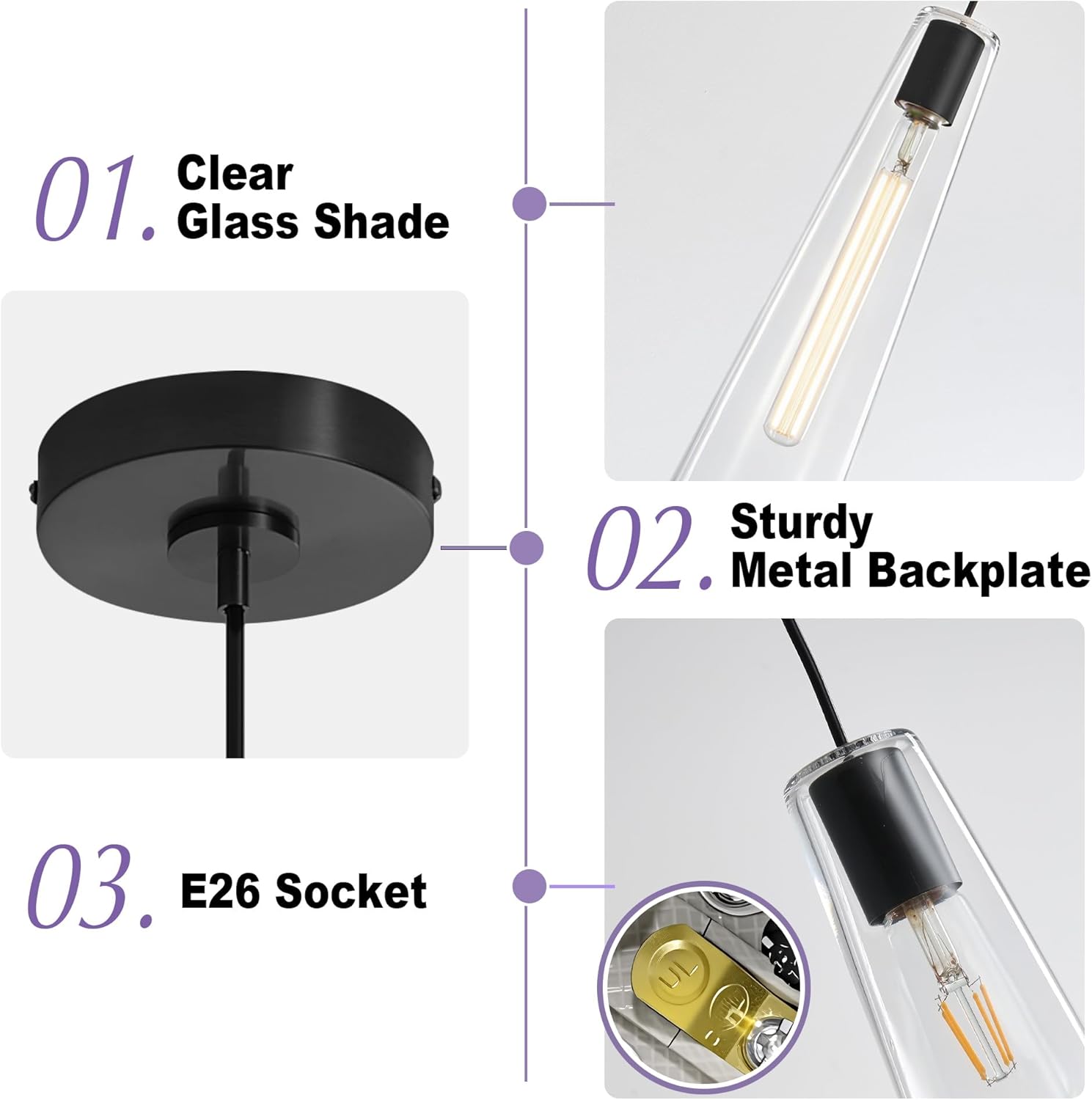 Modern Glass Pendant Lights Kitchen Island, Dimmable Pendant Light Fixtures 1 Pack