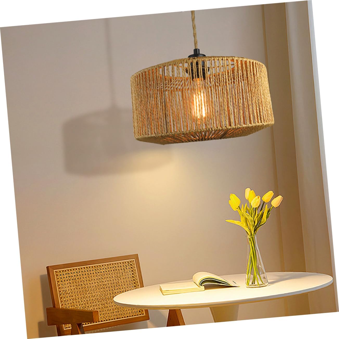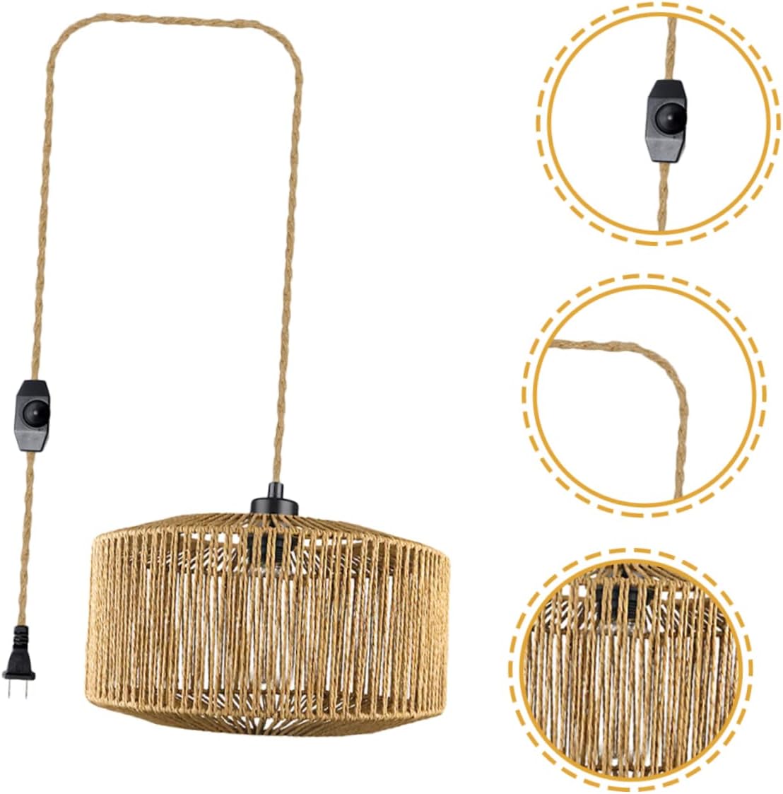 Package Include 1 x hanging light rope Characteristics -Material:Rope, metal pendant light cover -Note:The light source is not included weaving lamp shade. -Socket:E26/ hanging lamp shade. -Maximum power: woven lampshade. -Color:As Shown bulb light cover -Voltage: AC110V lamp shade -Size:32.00X32.00X17.50cm/12.58X12.58X6.88in plug in lampshade -Size:450.00X3.00X2.00cm/176.85X1.18X0.79in lamp shade replacement - Light weight, compact size, plug , very easy to use, time saving and efforts saving replacement lampshade - Adopting reliable material, this lamp shade features simple but stable structure, can be used for long time rattan lampshades. - Can be widely used for hanging lamp, floor light and more, of multiple uses lamp shade with rope - Weaving structure design, it can soften bright light better, prevent irritaion, offers protection for your eyes lamp shades for hotel - You can use this lamp shade to decorate lamp, bringing it a new look, can match with your furnishing style hanging lamp coverGoods Descriptionbulb light cover Plug , materials, no burrs, you can use it for long time.lamp shade to create a much warmer atmosphere at home, in the hotel or anywhere you install.rattan lamp cover Featured simple structure and light weight, this lamp shade can offer you easier installation and satisfying using feeling.bedside lamp shade Note: This item comes with US 110V plug, please confirm the voltage of your area before purchasing