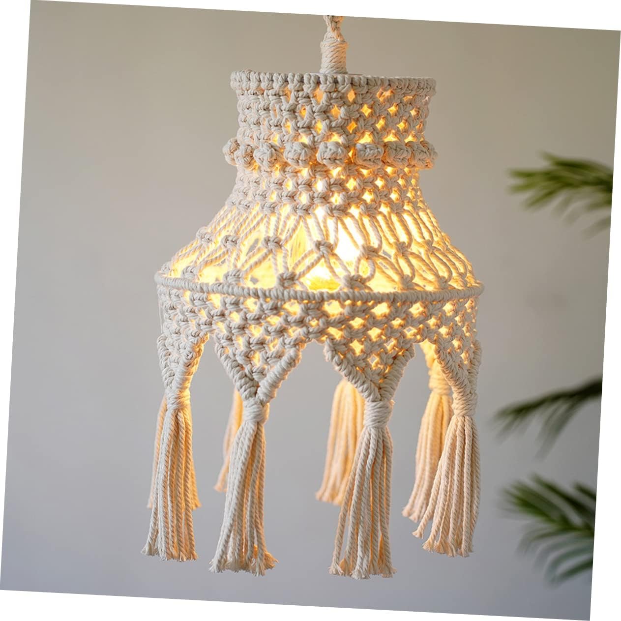 Package List 1 x Macrame Lamp Shade Features -Lamp Base: E27 ceiling lamp shade -Color: As Shown hanging lamp shade -Size: 35.00X25.00X25.00cm/13.76X9.82X9 ceiling lamp cover. -Material: Cotton rope, metal bohemian lampshade - When the light is on, the light comes through this lamp shade, creating a beautiful view hanging light shade. - Excellent craft, carefully down to every detail to give it a simple, textured and elegant look macrame light shade. - Our lampshade can easily win your favors, easily upgrade the look of your lamp bohemian. - A great lamp shade decor for bedroom, living room, dinner room, kitchen, office, hotel, restaurant, etc handmade lamp shade. - This light shade can well embellish your light, a decorative light fixture accessory to recreate your home decor macrame ceiling light cover.Goods Informationhanging pendant light shade It can be used not only as an additional decoration for pendant lamp, but also as a protector for ceiling lamp.vintage pendant light This vintage style hanging knitting macrame lamp shade is suitable for pendant light, ceiling light or chandelier.indoor light cover This lamp shade is made of , safe and durable, long serving life