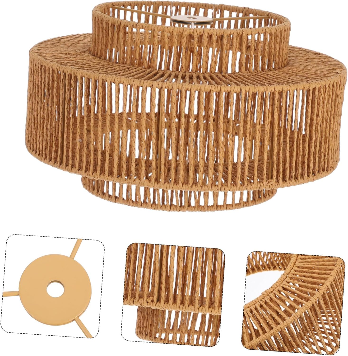 Package List 1 paper rope lampshade Features -Soft light diffusion: the lampshade's light diffusion properties ensure a soft and warm lighting effect, for creating a cozy environment woven lamp shade - Size: 31.00X31.00X18.00cm/12.18X12.18X7.07in clip on shade for ceiling light bulb -Handwoven craftsmanship: crafted from paper rope, each lampshade is handwoven, offering unique textures and a distinctive look that reflects personal style lamp shades for table lamps -Wide application: suitable for home, guesthouse, and commercial restaurant settings, this lampshade adds a unique artistic touch to any space lamp shade -Minimalist design: the simple design of this lampshade enhances the overall beauty of your space, creating a warm and inviting atmosphere boho lamp shade -Easy to install: lightweight and easy to install, this lampshade is ideal for various space configurations and decorative themes pendant lamp shades only - Color: Khaki floor lamp shade replacement -Material:Paper,iron clip on lamp shadeGoods Descriptionlinen lamp shade Easy to install, it can be paired with different pendant light fixtures to enhance your lighting decor effortlessly.barrel lamp shades Create a welcoming environment in your home or business with this minimalist paper rope woven lampshade.hanging lamp shade The lampshade's simple design and materials make it a fit for various interior styles, including boho and industrial.large rattan lamp shade Ideal for use in dining rooms, areas, or commercial spaces, it adds a touch of elegance and warmth
