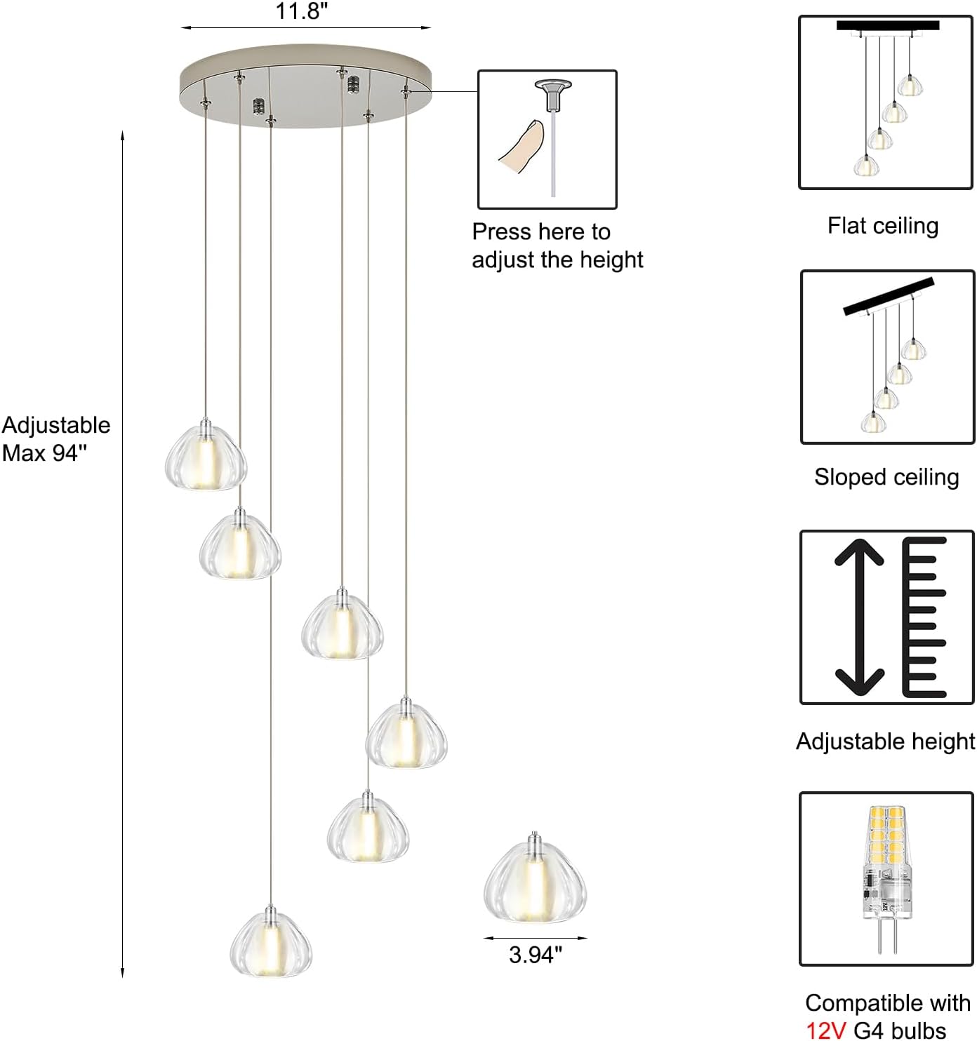 Modern Chandeliers for High Ceiling Entrance Living Room Long LED Ceiling Lamp Bubble Crystal Adjust Hanging Pendants Lighting for stairway entryway Foyer