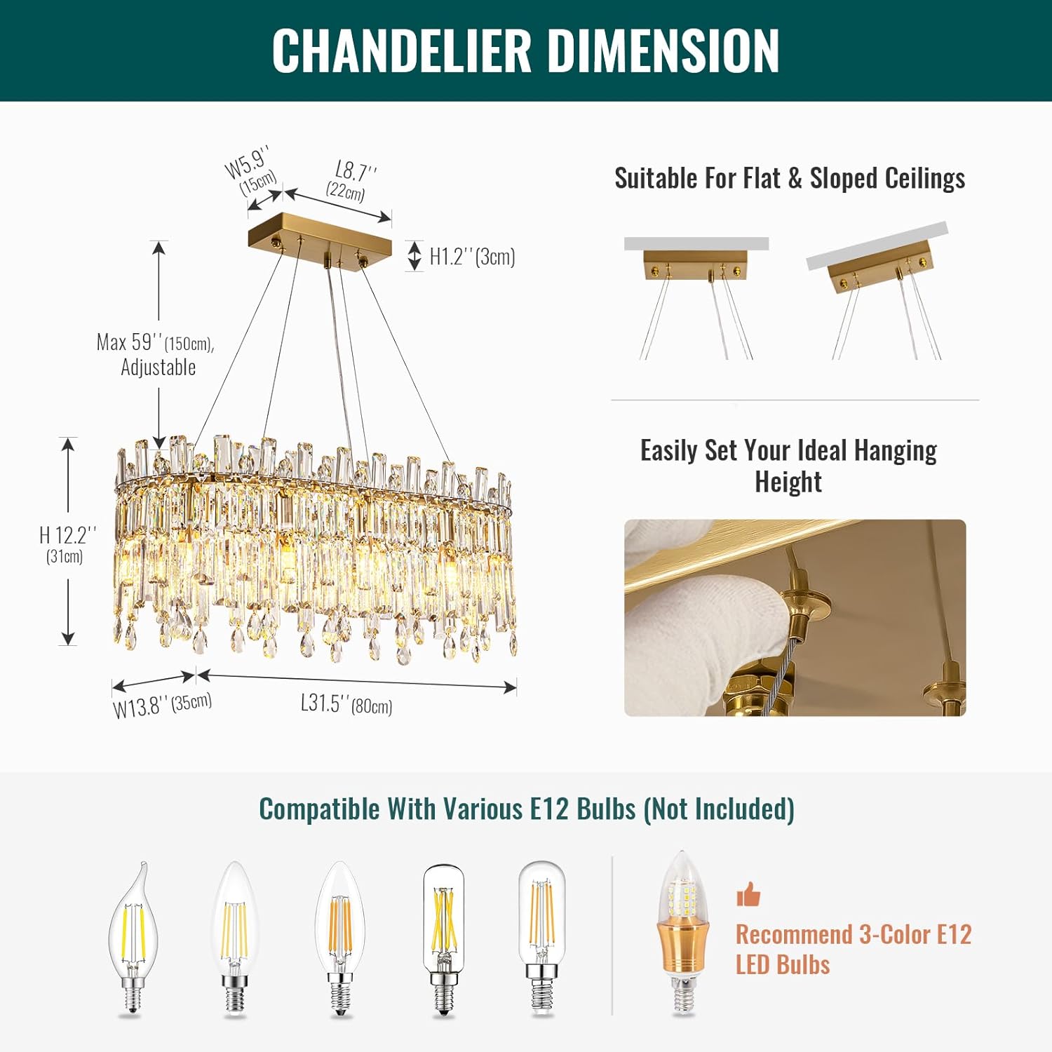 | Room Type | Dining Room, Living Room, Kitchen Island, Bedroom, Hallway, Bathroom, Home Office, etc |