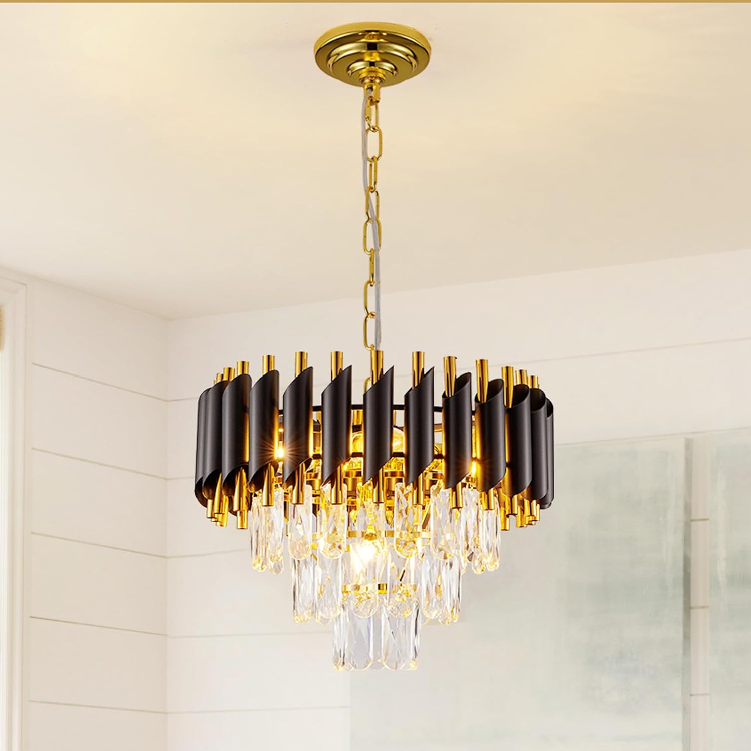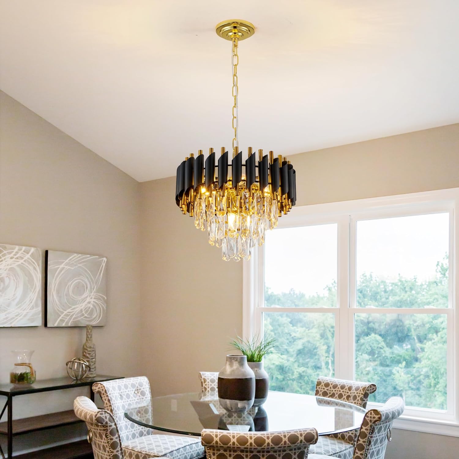 WALUIN Black Crystal Chandelier,Modern Raindrop Chandelier for Dining Room, Living Room