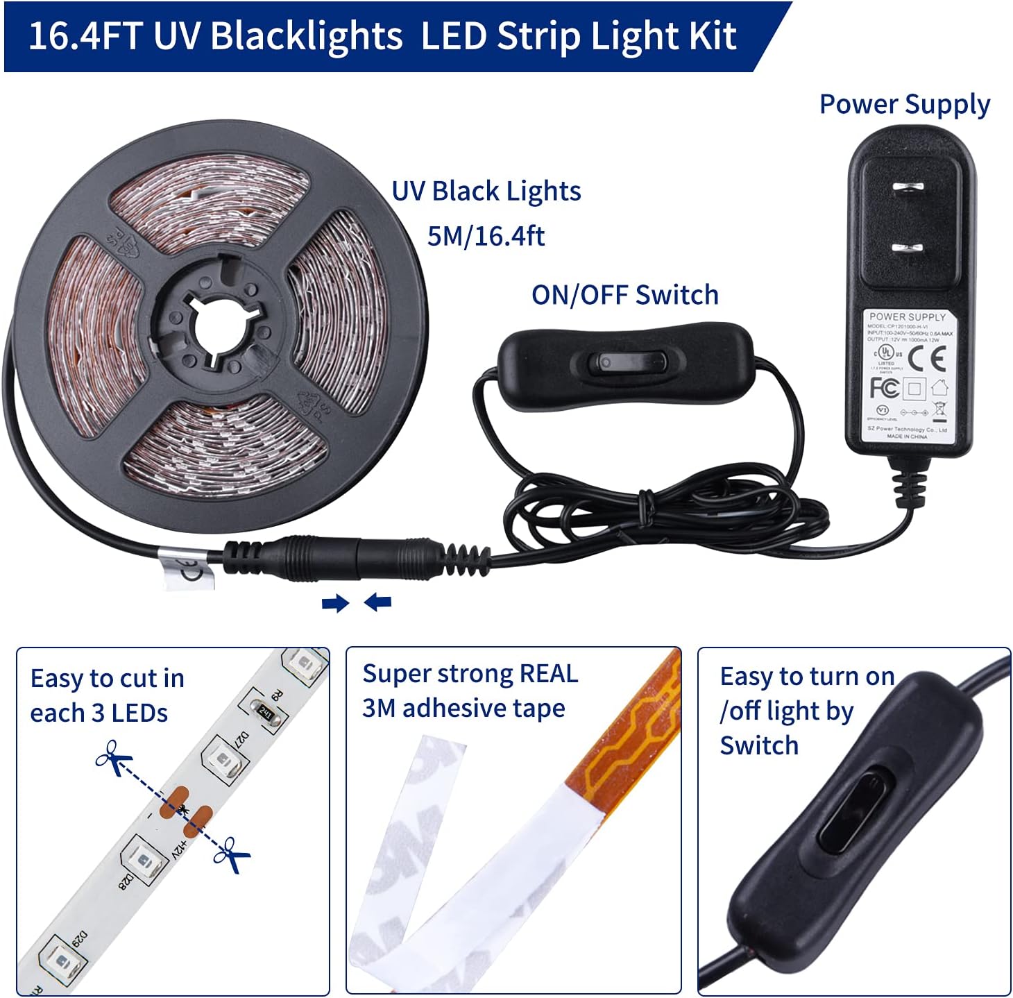 | Included Components | 20ft Black Lights Strip, 12V 1A Power Adapter with ON/OFF switch, Installation Accessories |