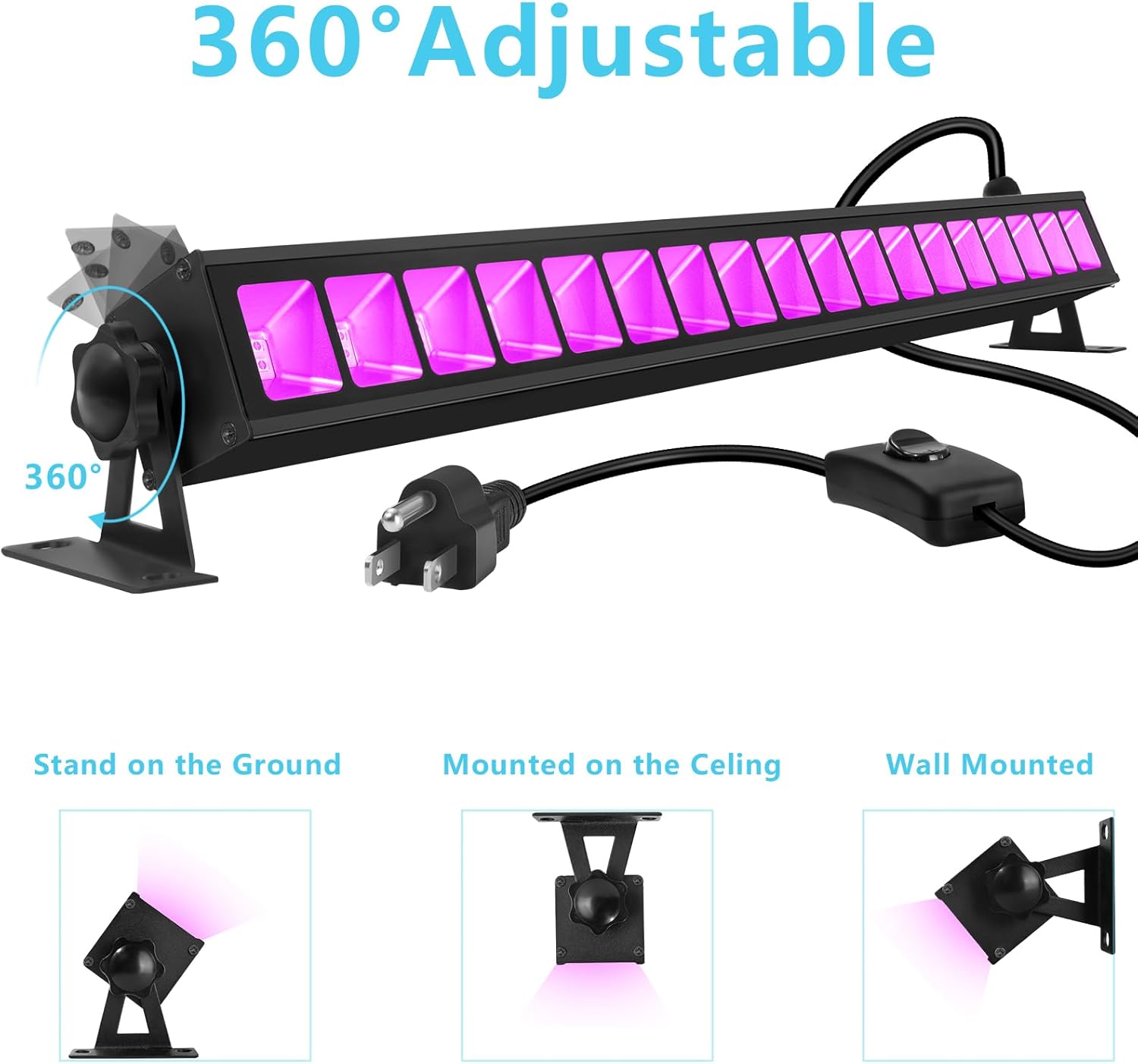 MEGOLUX 365nm 36W LED Black Light Bar, Black Lights with US Standard Plug and Switch, 4.9ft Power Cord, Blacklight is used for Fluorescent Poster, Glow Party, Halloween, Stage Lighting,Body Paint
