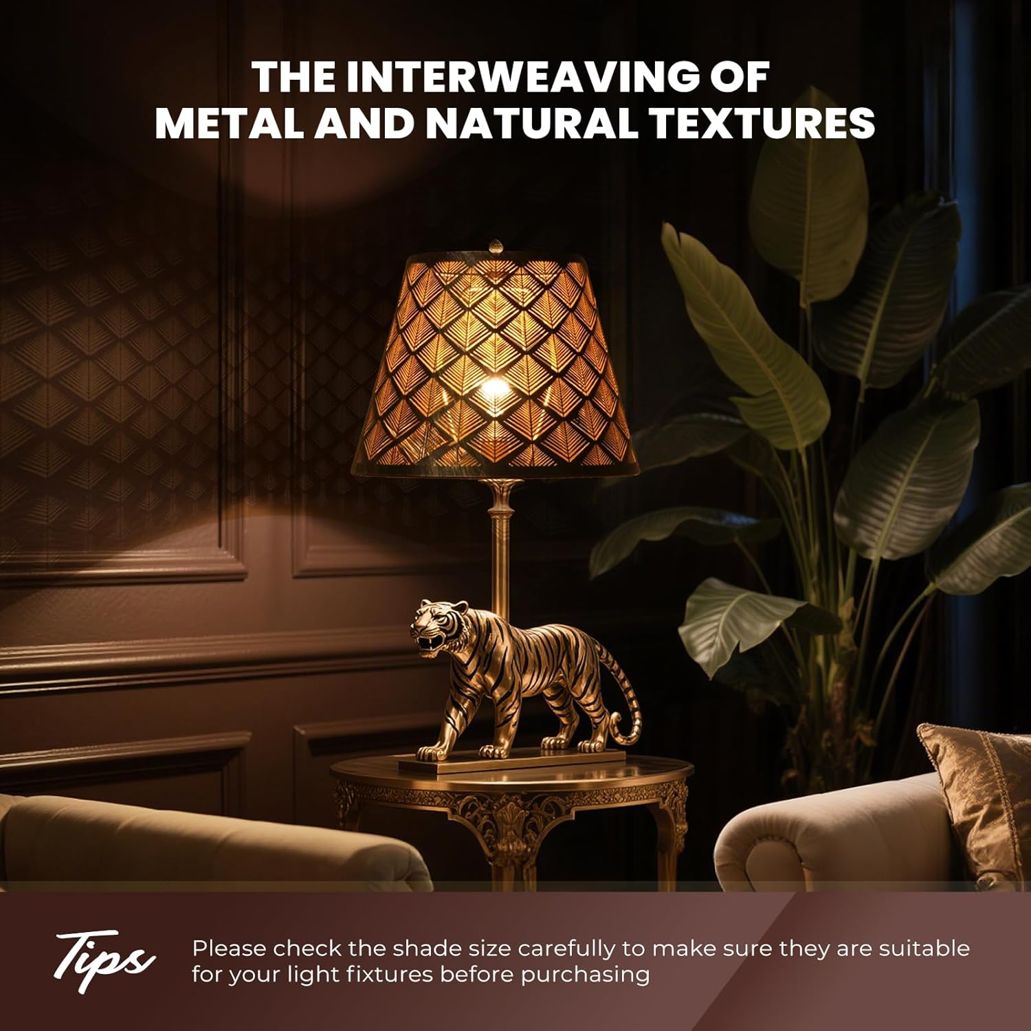 Upgrade your lighting with this elegant 6" top x 10" bottom x 7.5" high metal lamp shade featuring a stylish black and gold finish. Perfect as a replacement lamp shade for table lamps, floor lamps, or bedside lamps, this small arrow-etched design adds a vintage touch to any room. Crafted from durable metal, this bell-shaped lamp cover is ideal for those seeking a blend of classic and contemporary styles. Whether you need lamp shades for floor lamps or table lamp shades, this versatile piece fits most standard fixtures. The rectangular lamp shade design ensures even light distribution while the gold accents complement any decor. A must-have for anyone looking to replace lamp shades with something more stylish and functional. This large lamp shade replacement option is available in classic black and gold, making it suitable for both modern and vintage-inspired spaces. Shop now for premium quality lamp shades that combine durability with aesthetic appeal.