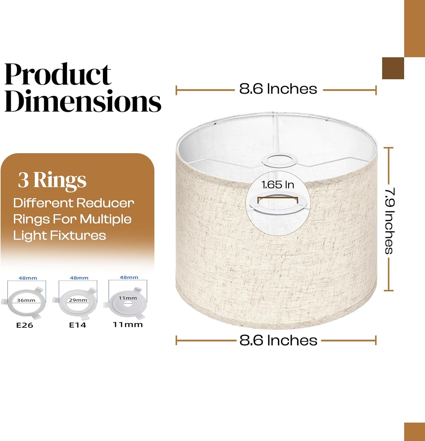 | Included Components | 2x Bottom Rings, 2x Linen Shades, 2x Top Rings, E26, E14, 11mm |