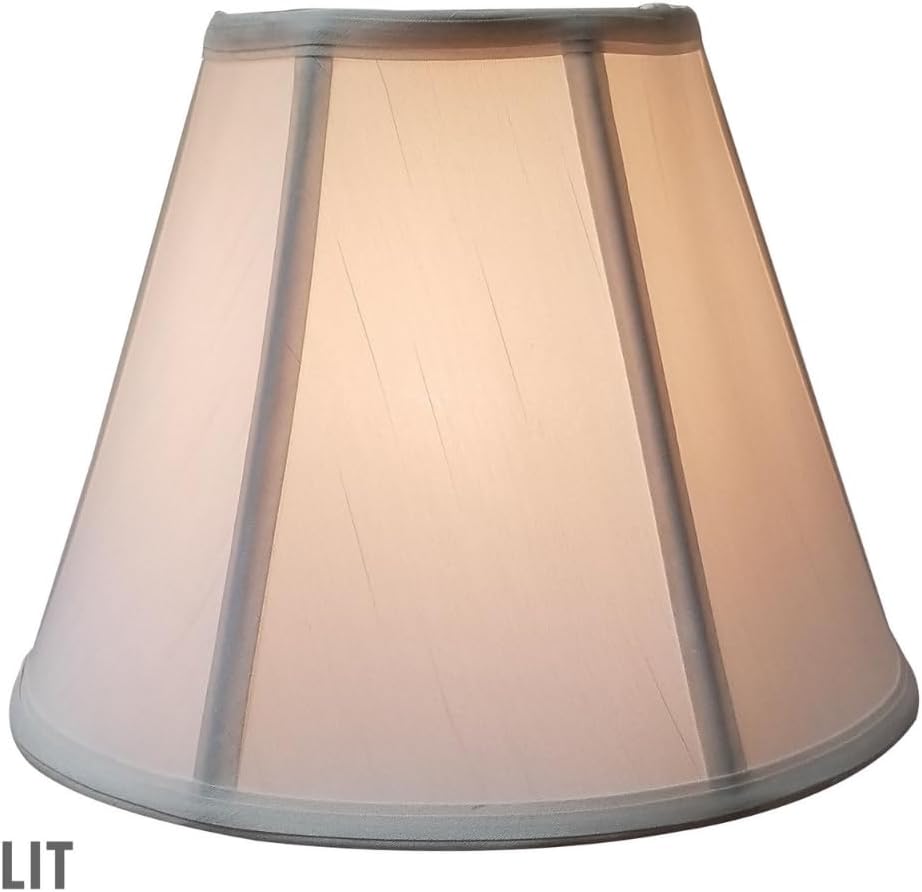 Discover timeless style at an unbeatable value with the Royal Designs, Inc. Essentials Collection Deep Empire Lamp Shade. Part of our best-selling Essentials line, this classic shade features a deep empire silhouette—a taller, more elegant take on the traditional empire shape—designed to bring balance, proportion, and sophistication to any lamp. Crafted from silk-type shantung fabric with a softback off-white polycotton lining, this shade diffuses light beautifully while adding texture and warmth to your space. The standard spider fitter with brass-finish washer is compatible with most harp-and-finial setups, while the rust-resistant metal frame ensures long-lasting durability. Available in multiple sizes and color options, including versions with or without decorative trim, this shade offers flexibility for every lamp and interior style from traditional to transitional. Whether you're updating a table lamp, floor lamp, or vintage fixture, this handcrafted shade from Royal Designs, Inc. delivers quality, fit, and timeless appeal at the right size and price. Height is measured by slant height from top to bottom of the lampshade’s front face. Measurements listed as (Top Diameter x Bottom Diameter x Slant Height). Please measure your existing shade—a replacement harp may be needed for a proper fit or additional adjustment if changing the height of your shade.
