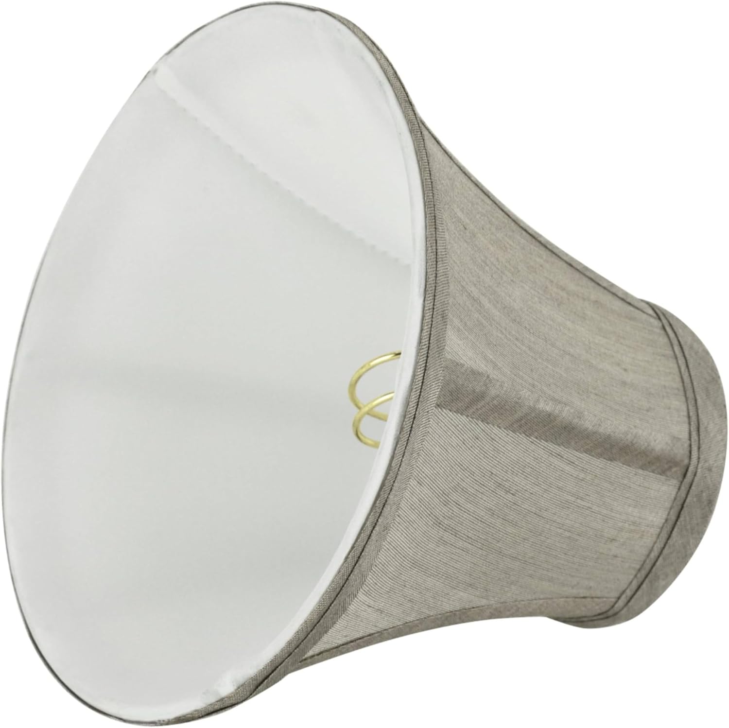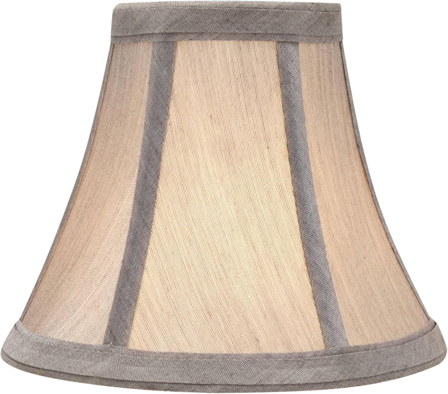 Aspen Creative Item #30033-6A Aspen Creative offers a 6-pack bell shaped clip-on lamp shade in grey that will enhance any space. Shade Dimensions: 3" Top x 6" Bottom x 5" Height The shade is made with a clip-on styled fitter that is most compatible with torpedo chandelier light bulbs but can also be used with other bulbs that are similar in size. Clip-on style fitter designed for bare bulb chandeliers and wall sconces that use candelabra bulbs with an E12 base and 40 watt max, bent tip style bulbs not recommended (bulbs not included).Crafted with precision and attention to detail, our lamp shades are made with high-quality materials that are built to last. They are made to withstand daily use while still maintaining their shape and beauty. This product is suitable for a wide range of lighting options including small table lamps, accent lamps, candle stick lamps, chandeliers, and wall sconces, and bedroom night light lamps.