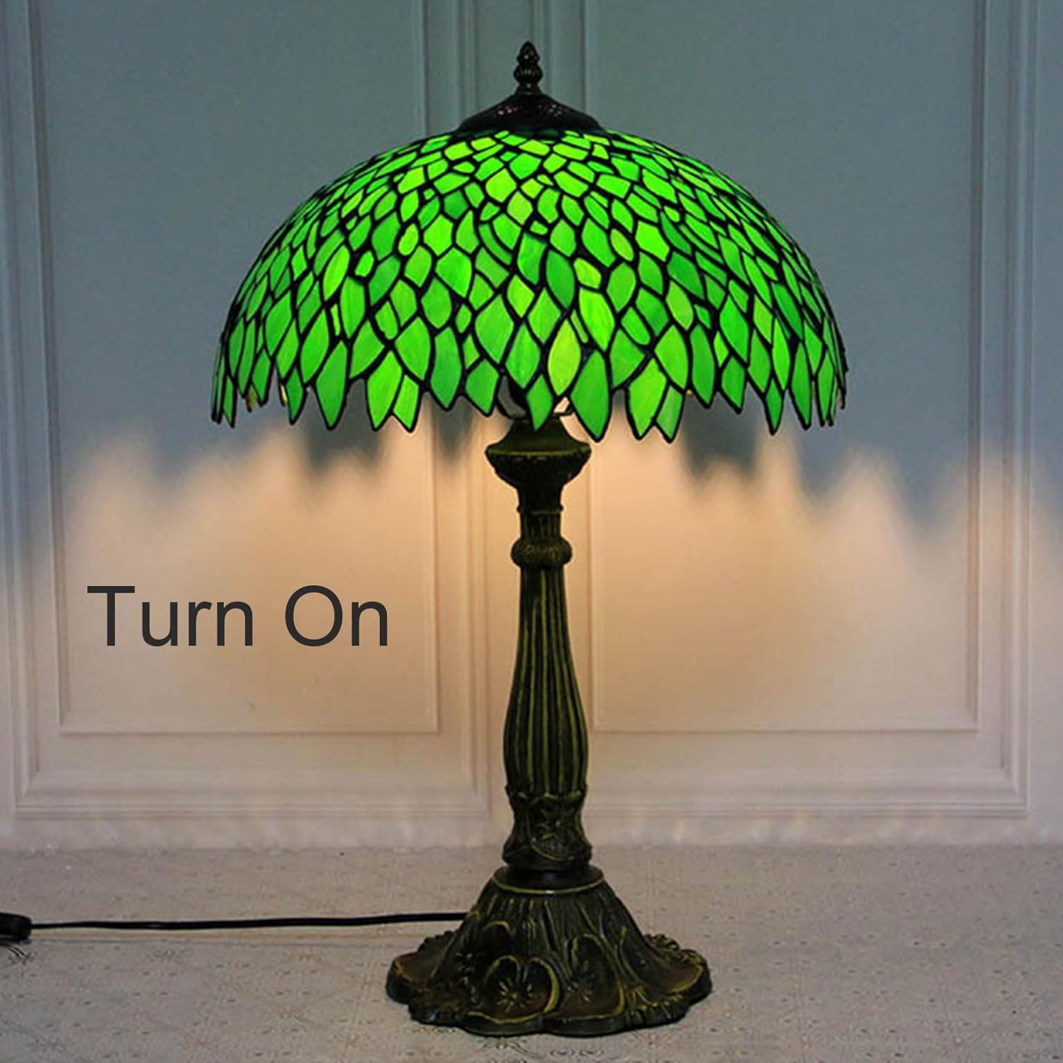 ★tiffany style table lamp shade replacement only-16 inch, Tiffany Lamp Shade Accessories Replacement,Blue Yellow Tulip Green Leaf Stained Glass Lampshade for Floor Lamp Ceiling Pendant hanging Lamp chandelier Ceiling Pendant Light hanging light desk lamp★ SPECIFICATIONShade Material: Stained glassShade diameter : 16 inch (40cm)Shade height: 8.66 inch (22 cm)Top hole diameter - 1cm / 0.39 inches★ Parts: NOBulb : NOWire: NO★ NOTE1. The shade has been protected with mineral oil, please use a soft dry cloth to remove any excess oil.2. Please make sure that the lamp shade size fits you. Different bulb can get different effect. We recommend using warm yellow light bulbs.★ Process Description: The soldering process fixes the glass with the glass. Because it is purely handmade, it has manual randomness, and the unevenness is not.The flat black lines are the marks left by the craftsmen by hand, a style characteristic of stained glass.★ Mission Tiffany Stained glass is primary color glass processed into different colors and textures through a special process, and the sound of beating on large glass, It has a glass texture. When it is cut into small pieces, it will lose its original sound quality when beaten again. ★ The color of the Tiffany stained glass is rich and does not fade after light transmission.★ Metal part of the lampshade: Use high-quality eco-friendly paint,high temperature baking treatment,Black in color, Do not fade,Does not rust,Clear texture★ Super protection: Double-layer protection to get home safely