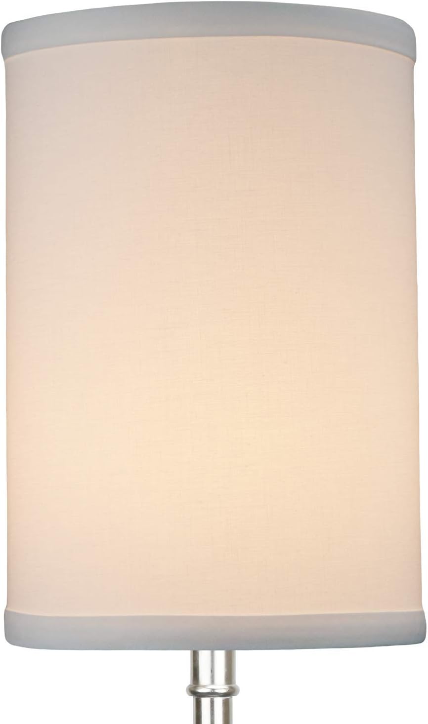 Clip-On Lampshade for Use on Lamps with a Standard Edison-style Bulb. By request, you may specify changes to the dimensions, covering or the hardware color. (Extra charges may be necessary). The inside is a white styrene (white plastic). The top and bottom of this item is adorned with a 1/2" band of single fold lampshade trim. The trim is the same color as the covering.