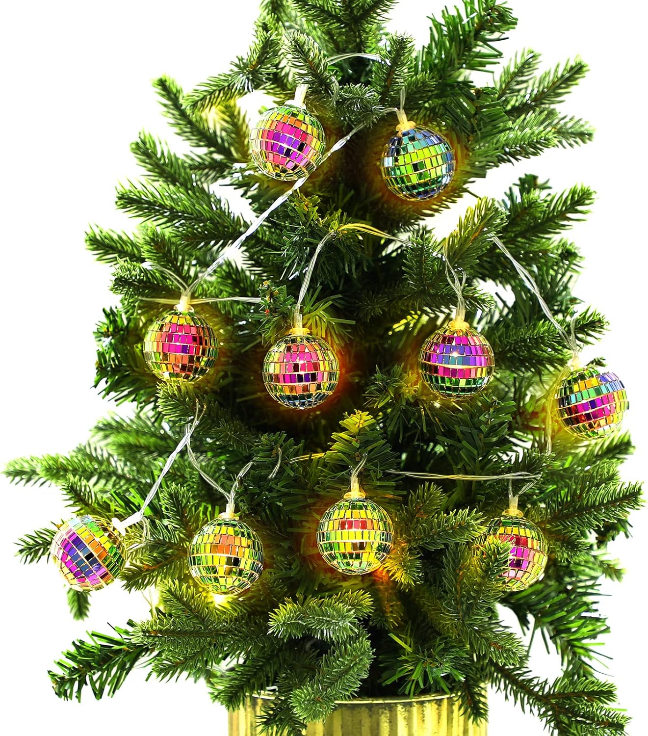 Features: DIY experience: The Christmas disco ball is easy to install. You can make DIY designs almost anywhere. Take these battery powered strings of lights to the park for an evening picnic that will be very impressive. Your kids will love them. Wide application: Disco party decorations are widely applied in balconies, gardens, courtyards, lawns, porches, gates, yards, homes, windows, children's rooms, weddings, parties, Christmas parties and so on. They can not only add warm and charming atmosphere, make your party atmosphere more active and lively, but also can be shooting propsSpecifications: Material: LED, copper wire, PCColor: as pictures shownSize: about 5 cm/ 2 inchesPackage includes: 1 x Christmas disco ball stripNotes: Manual measurement, please allow slight errors on size. The color may exist a slight difference due to different screen displays. Winding risk may exist, please keep away from little kids.