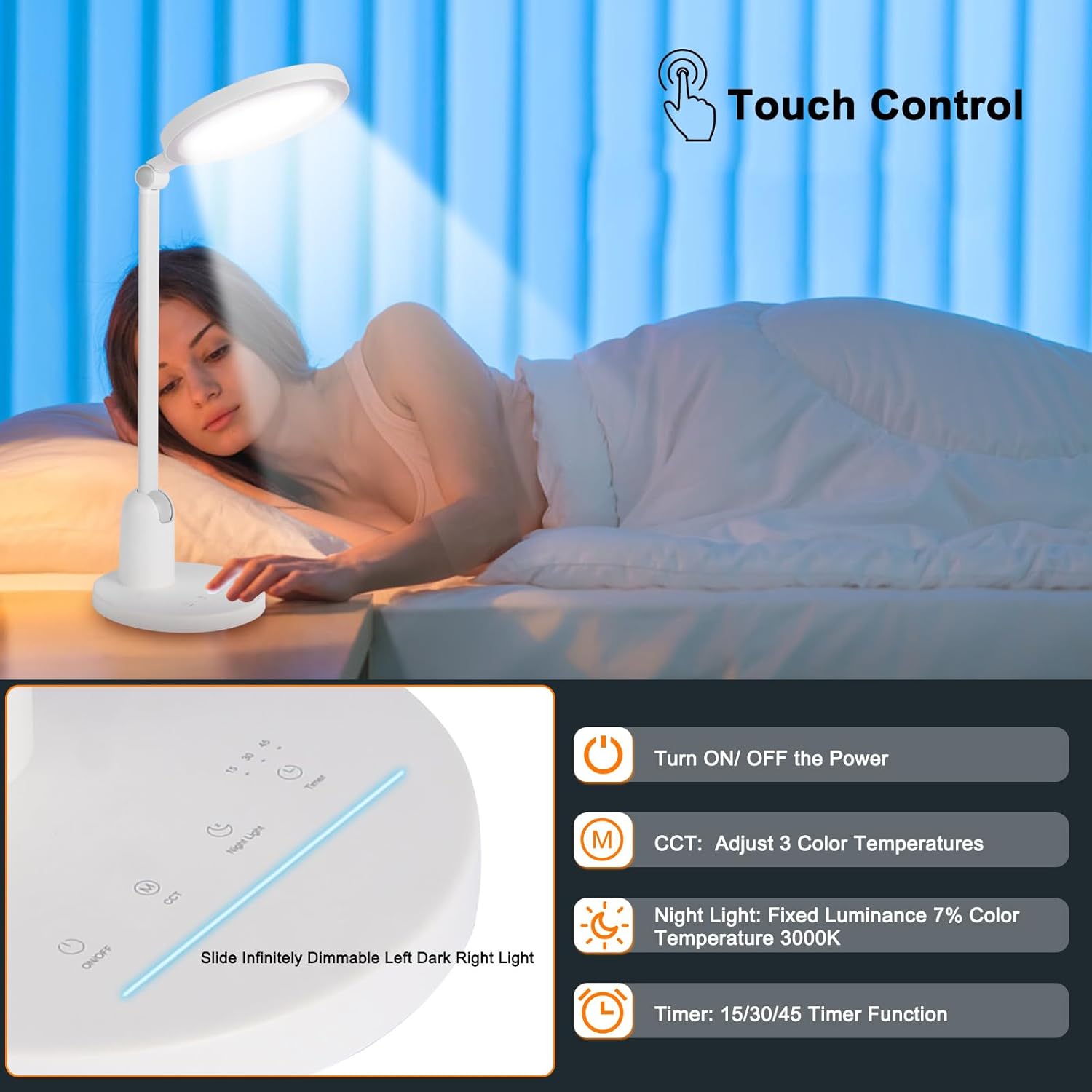 | Additional Features | 3-Speed Timer, Adjustable Arm, Adjustable Color Temperature, Memory Function, Stable Base |