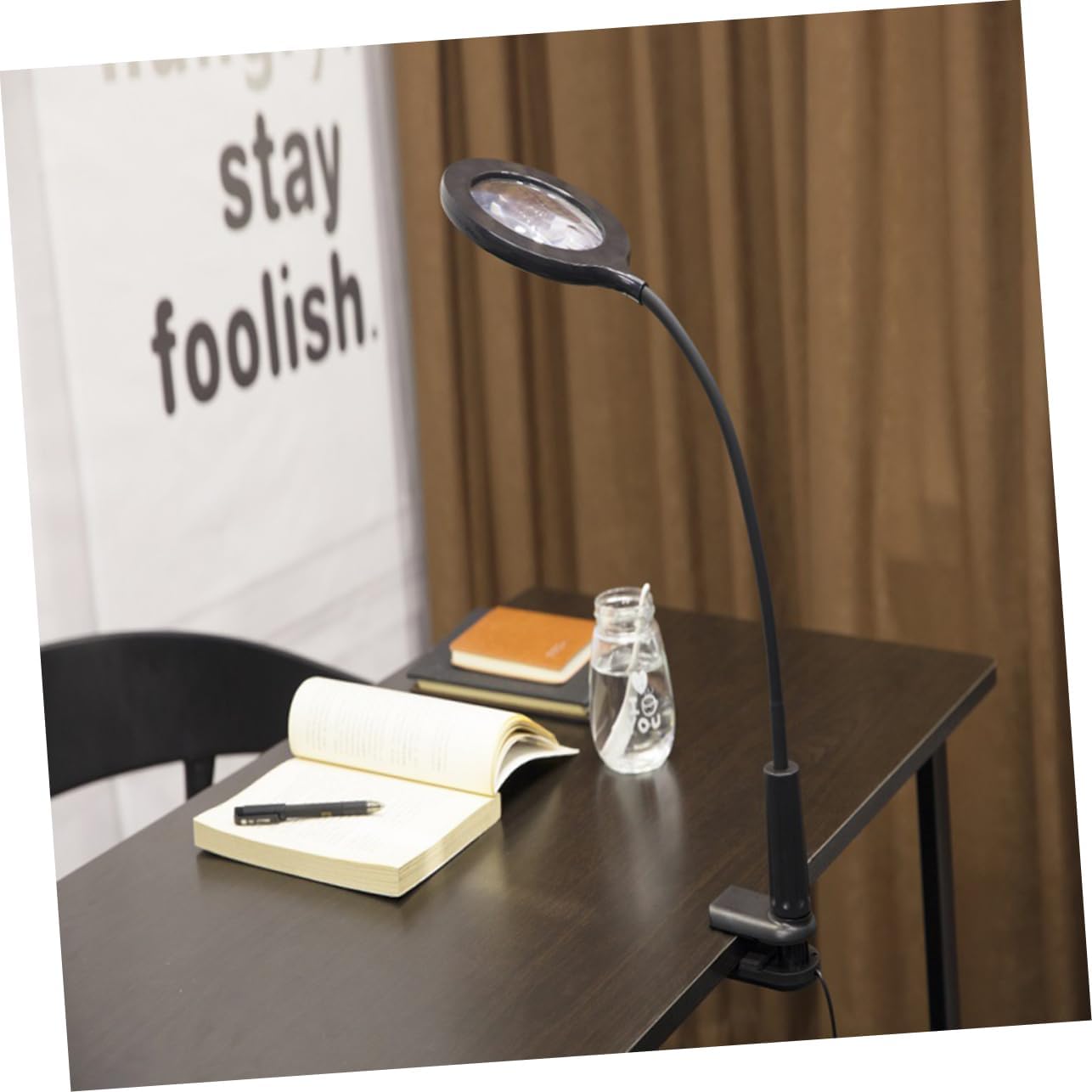 Package List 1 x LED Magnifying Glass Lamp Features - Size: About 60 x 11 x 8.7cm/23.62 x 4.33 x 3.42 inch clip desk lamp. - Power: 5W desk lamp. - Lamp beads: 60pcs clamp desk lamp. - Input Voltage: DC 5V 0 desk light with clip. - Material: ABS + Silicone dimmable bedside lamp. - Color: Black LED magnifying. - Color temperature: 6500K White Light reading light. - It can be used any time in any place. Suitable for study, working and reading LED desk lamp. - Help the aged people see letters more clear hands free magnifier. - for reading books, sewing, cross stitch, knitting, jewelry making, needlepoint, painting, embroidery, repairing electronics, etc hands free magnifying glass. - Take a look through the magnifying lens and watch the world get a little bigger! magnifying light stand - Designed with a flexible and bendable neck, it is suitable for you to adjust light angle Desktop reading lamp. Goods Information clip on desk lamp This reading light produces light, no flickering, and illuminates your desk without glare or eye strain.lamp The light with clamp design can firmly hold onto a desk, bedhead, edge, space saving and offering hands free magnifier and light