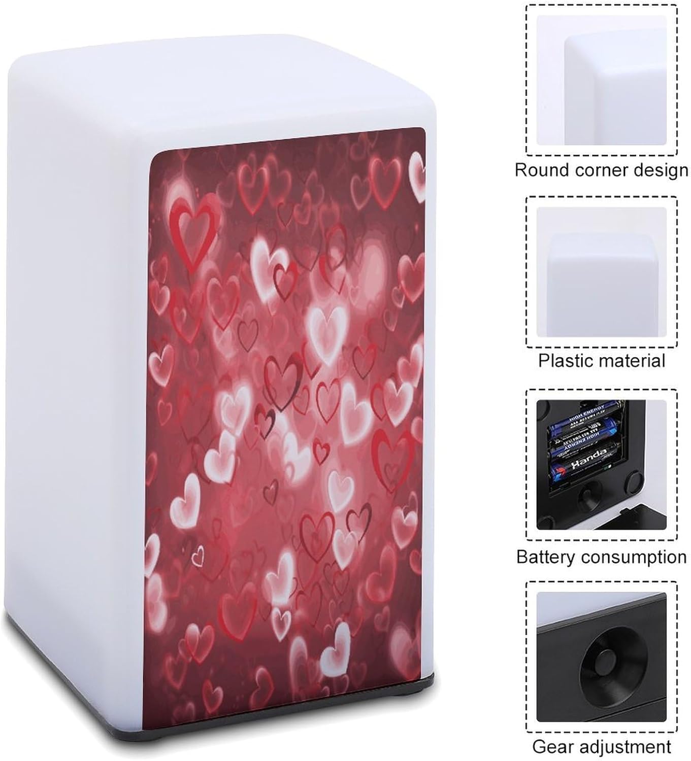 Tired of groping in the dark at night? Looking for a desk lamp that's both practical and stylish? Our Valentine's Day Love Heart printed small desk lamp is the solution you've been looking for—designed to make everyday life easier and more personalizedSay goodbye to the same old, cookie-cutter desk lamps. We use UV printing technology to imprint your lamp with a design. Even years later, these designs remain visible, transforming an ordinary desk lamp into a treasured keepsakeThe soft, warm glow is a game-changer. For night owls, it means no more waking up your partner. For those afraid of the dark, it's a nighttime companion that dispels the darkness and helps them fall into a deep sleep. Even at the bar, it creates a warm and cozy atmosphere without being overly dazzlingIt's compact and portable, making it easy to place anywhere—by your bed, on a bathroom counter, or to take with friends. Its thick plastic material withstands accidental knocks and can be kept clean with a quick wipeStruggling to find a gift that's both practical and thoughtful? This lamp for dorm ticks all the boxes. It'll be a unique gift that shows you care. Your friends and parents will think of you every time they open it