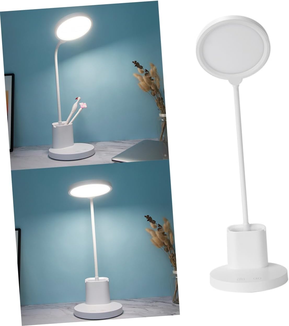 Package List 1 x reading LED light Features - Light color temperature: 3500K, 4000K, 4500K desk lamps for bedroom. - Material: ABS reading lamps for book. - Power: 10W reading light. - Color: White desk lights for home office. - Size: About 55x15x15cm/21.65x5.91x5.91 inch eye-care table lamp. - Input voltage: 5V 2A office table lamp - Stable base, allowing the light to stand on its own reading book light. - Touch screen style color temperature adjustment, fashion and practical desk lamp for study. - Ultra-bright LED light provides a clear, bright spotlight for reading in the dark, enjoying hobbies, camping, or using a keyboard lamp for desk. - Come with container holder for stationary pen, rulers, eraser, etc, storage desk lamps for office. - Flexible gooseneck lets you position the light exactly where you want it and keep it there reading lights. - Bright and portable enough makes it can go where you go desk lights for study.Goods Informationstudy lamps for desk It is a mini LED book light for Night Readers or Bed Readers! With this gadget, your partner or your roommates will not be disturbed by traditional fluorescent as this light is specially designed for personal night reading