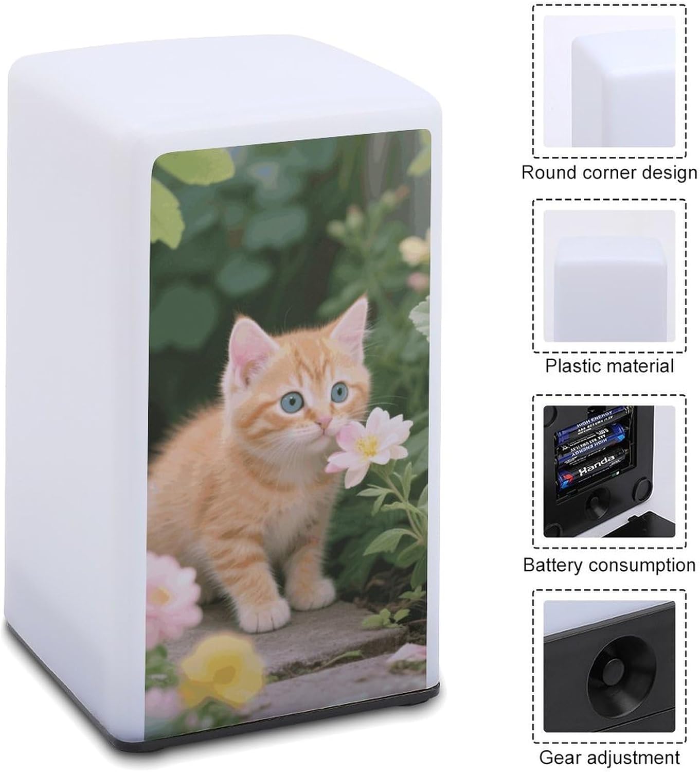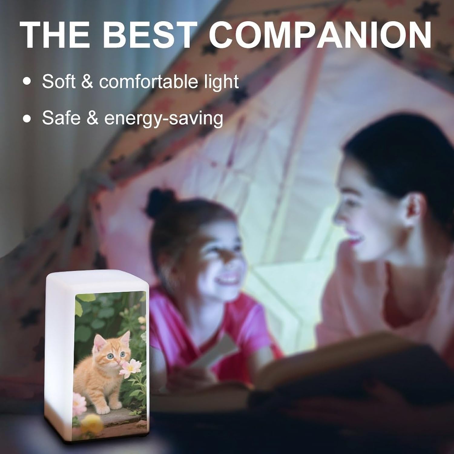 Our Little Cat Playing reading lamp offer the ideal blend of functionality and daily portability, adding sophistication and warmth to your homeCrafted from nice plastic, this night lamp for bedroom,is lightweight, durable, and easy to clean. It emits a soft, warm glow that can guide you through a dark hallway or help you use your phone in bed without disturbing your familyPowered by 3 AAA batteries (batteries not included), this cute end table night light,is suitable for bedrooms, kitchen, bathrooms, bars, and more. Its classic design complements most home styles and makes an ideal gift for family and friends
