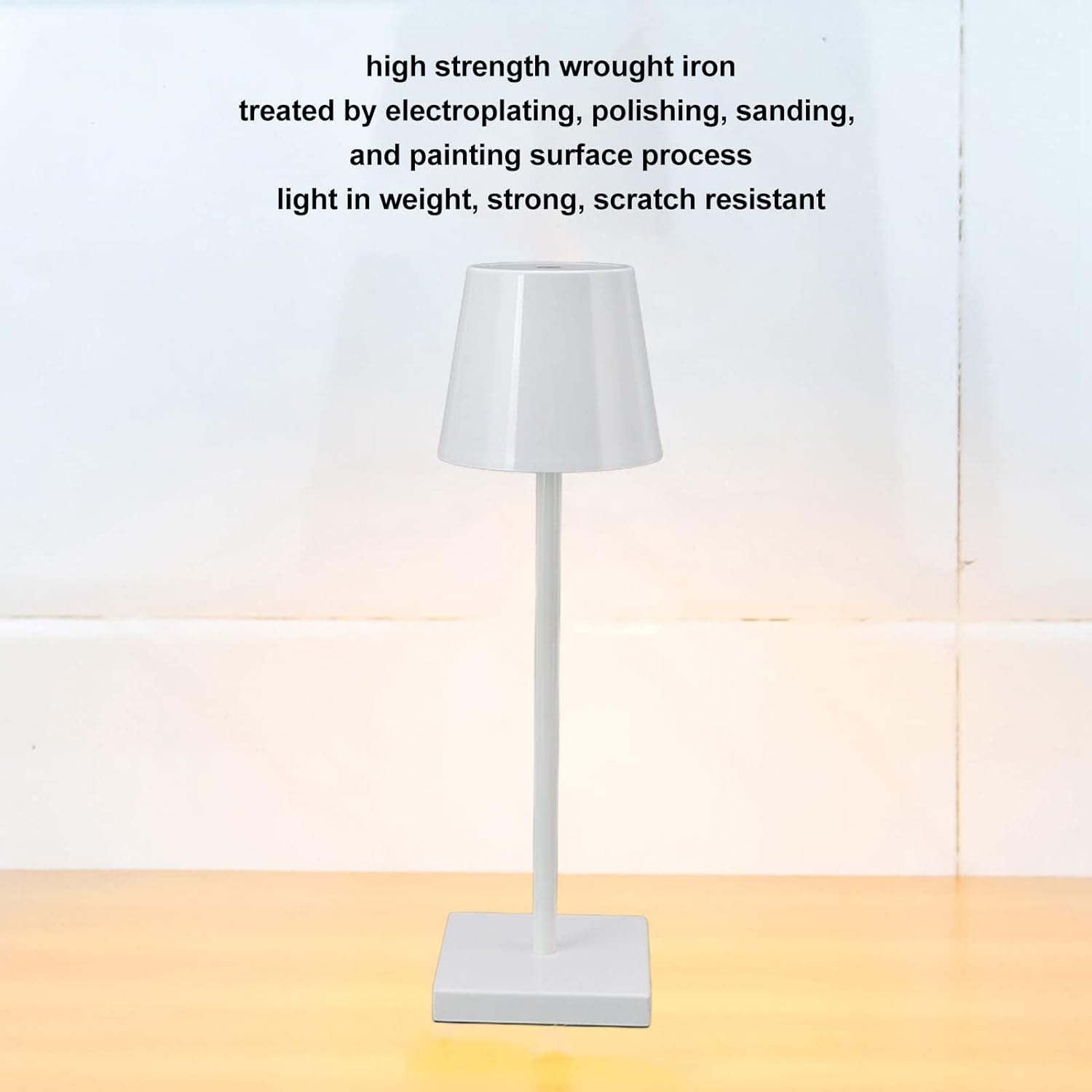 Specification: Item Type: LED Table LampMaterial: Iron, AcrylicSize:Height: Approx. 35cm/13.8inTop Diameter: Approx. 7.5cm/3.0inBase Length: Approx. 10cm/3.7inBase Width: Approx. 10cm/3.9inBuilt in Battery: 18650 Lithium Battery 3600mAh (Included)Light Source: Warm Light, White Light, Neutral LightGear Mode: 3 Gear Switching, Long Touch Stepless Dimming in Any GearProcess: Electroplating, Polishing, Frosting, PaintingControls: Top Touch SwitchGross Weight: Approx. 1340g/47.3oz Package List: 1 x LED Table Lamp 1 x USB Cable 1 x Manual Note: Please allow some errors due to manual measurement.Please note that the new type and old type of this product will be sent randomly, and make sure you will not mind before ordering.