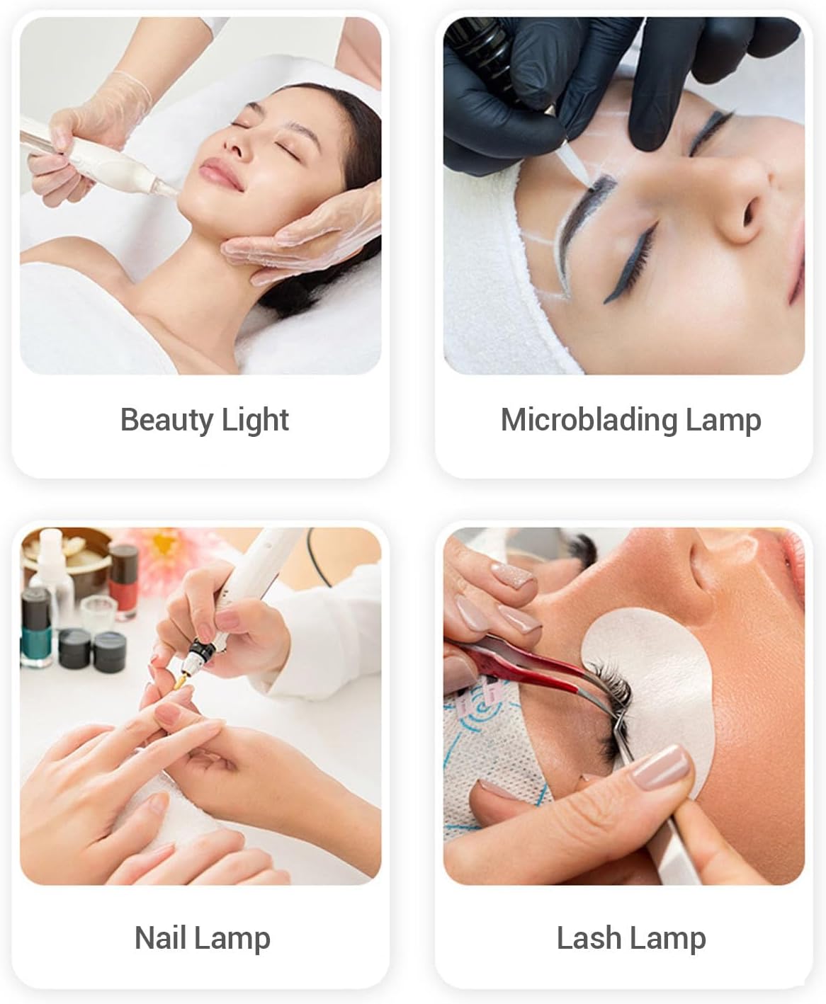 Specification: Item Type: Half Moon Eyelash Lamp Material: Aluminum alloy, ABS LED Chips: 192pcs Color Rendering Index: RA>95 Color Temperature: 3200-6500k Package List: 1 x Half Moon LED Eyelash Lamp 1 x Desktop Stand 1 x Adapter 1 x User Manual