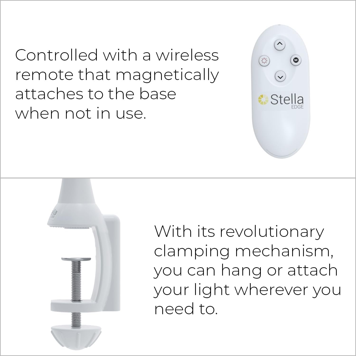 | Additional Features | StellaEdge is designed to fasten to any surface/edge 1/2" to 2-1/2" thick. Features a steel reinforced clamp with stainless steel hardware plus an extra 3" added to total neck length-lets you put the light you need, exactly where you need it. Utilizes Stella Lighting's Tri-Color Spectrum technology-three different light spectrums (warm, cool and pure white). Uses ultra-efficient LED technology which produces more light and virtually no heat. LED bulbs provide 50,000 hours of light |