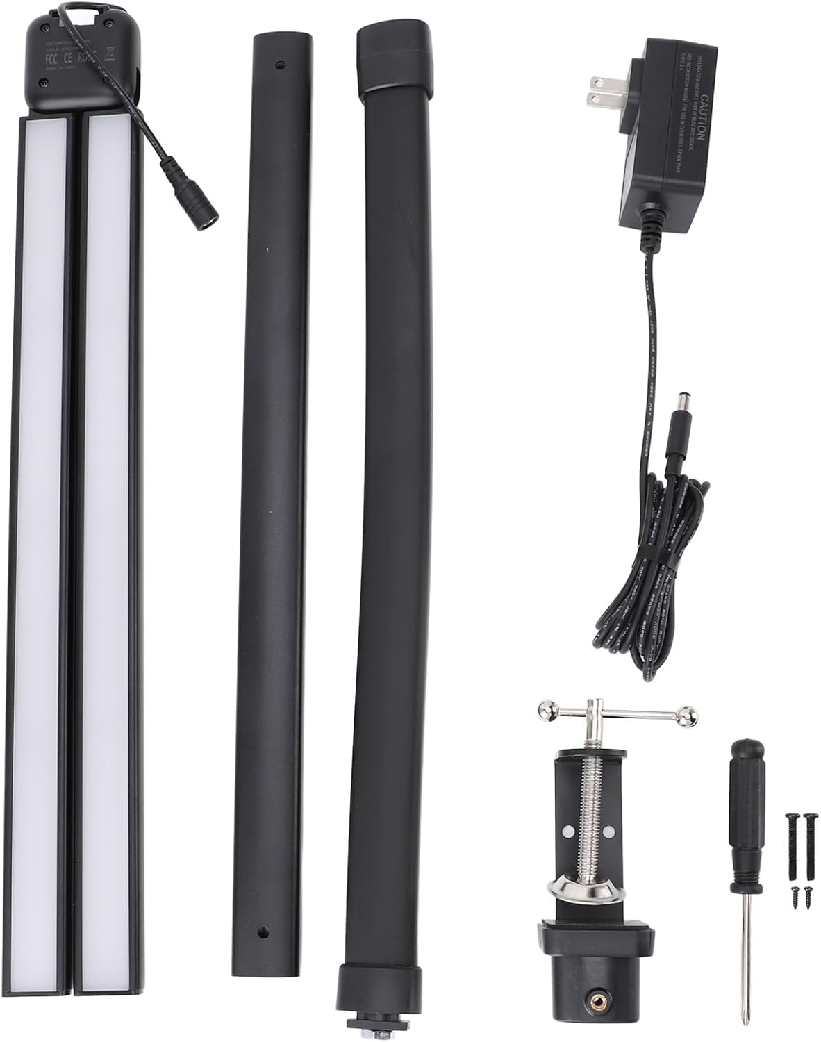Specification: Item Type: LED Desk Lamp Material: Aluminium Alloy Weight: Approx. 1182g/41.7oz Power: 24W Color Temperature: 2700-6500k Luminous Flux: ≥1200LM RA Value: ≥90 Length of Bracket After Installation: Approx. 79.8cm/31.4in (The Top Section Can Be Bent) Package List: 1 x Lamp 2 x Brackets 1 x Base 4 x Screws 1 x User Manual 1 x Adapter 1 x Note: Manual measurement please allow some error.
