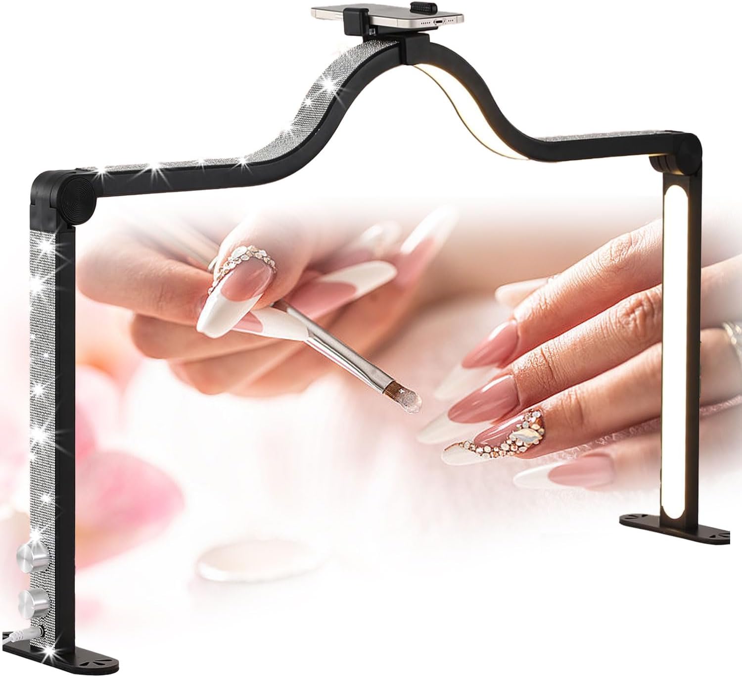 Foldable led nail tech lamp has adjustable brightness and color temperature settings, which allows you to create a personalized lighting environment. Suitable for nail tech, beauty salon and home office.Specifications:Function knob: adjust brightness/color temperature.Number of lamp beads: 384Power: 45WColor rendering index: RA>95Voltage: 110V-220V/50-60HZMaterial: aluminum alloy + PVCBrightness: three-color stepless dimmingColor temperature: 3000-6000KLamp body color: black/white/pinkPackage: 1*Half Moon Light for Nail Desk