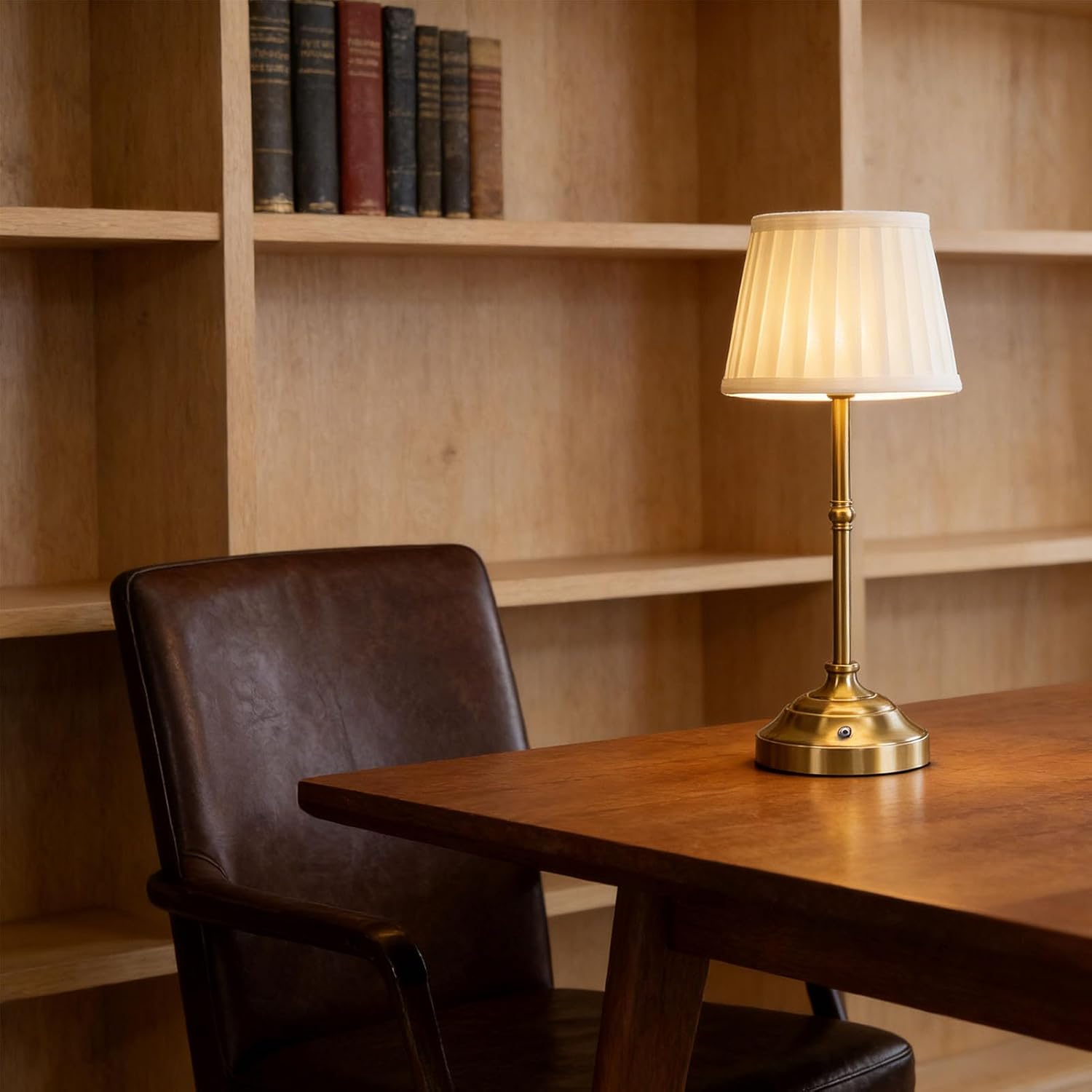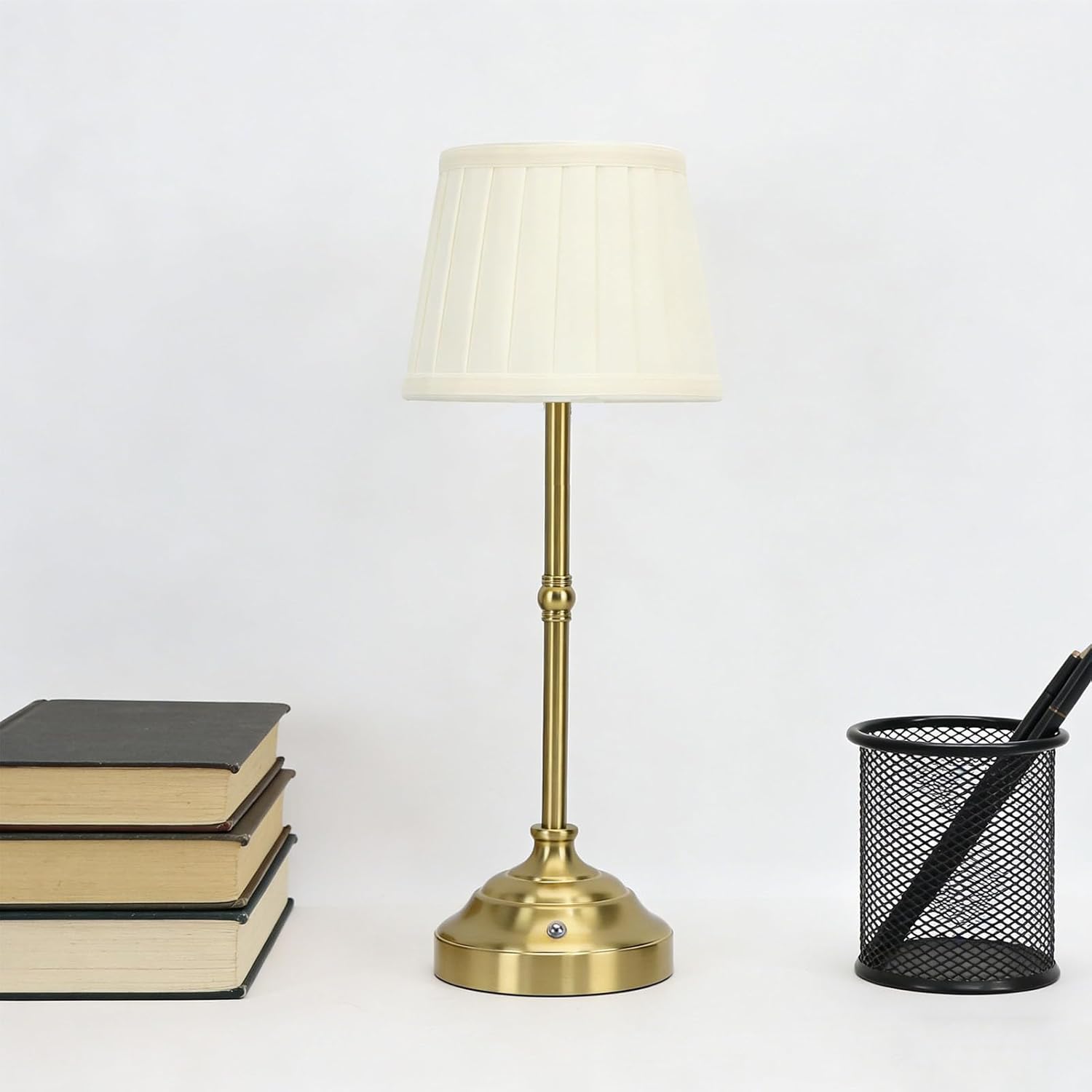 1. Adjustable Brightness: The cordless table lamp features an adjustable brightness setting, allowing you to tailor the lighting effect for different environments and ensuring a comfortable illumination experience. 2. Elegant Fabric Pleated Lampshade: With its simple yet elegant pleated fabric lampshade, this lamp delivers a refined aesthetic, enhancing the room's ambiance with its soft and gentle light. 3. Aluminum Alloy Body: Crafted from aluminum alloy, this nightstand lamp is robust and reliable. Its compact and portable design minimizes space usage, making it easy to carry and reposition. 4. Long Lasting Rechargeable Battery: Equipped with a built in 1200mAh battery, this night light offers extended usage time and can be conveniently recharged, adding to its practicality. 5. Versatile Application: Excellent for indoor spaces like bedrooms and studies, this pleated table lamp is also suitable for commercial settings such as cafes, restaurants, and bar. Spec: Item Type: Cordless Table Lamp Material: Fabric, Aluminum Alloy Weight: Approx. 697.00g/24.59oz Battery Type: Li Battery (Shipped with Built in Battery) Battery Capacity: 1200mAh Product Size: Approx. 40x14cm/15.75x5.51in packing list: 1 x Table Lamp (Includes 4 Accessories) 1 x USB Data Cable 1 x English Instruction Manual