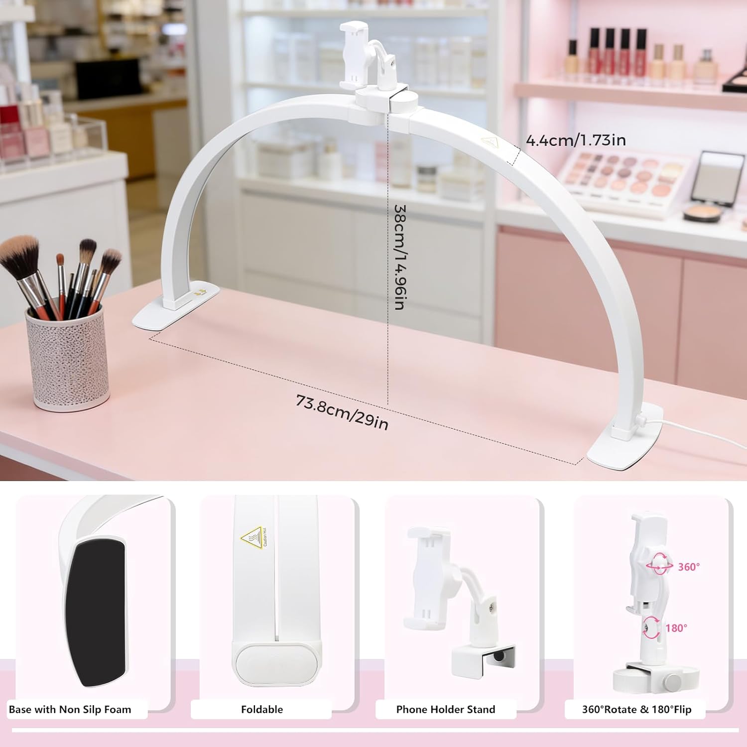 | Included Components | Half Moon Light x 1, Metal Base x 2, Phone Holder x 1, Stand Base x 1, User Manual |