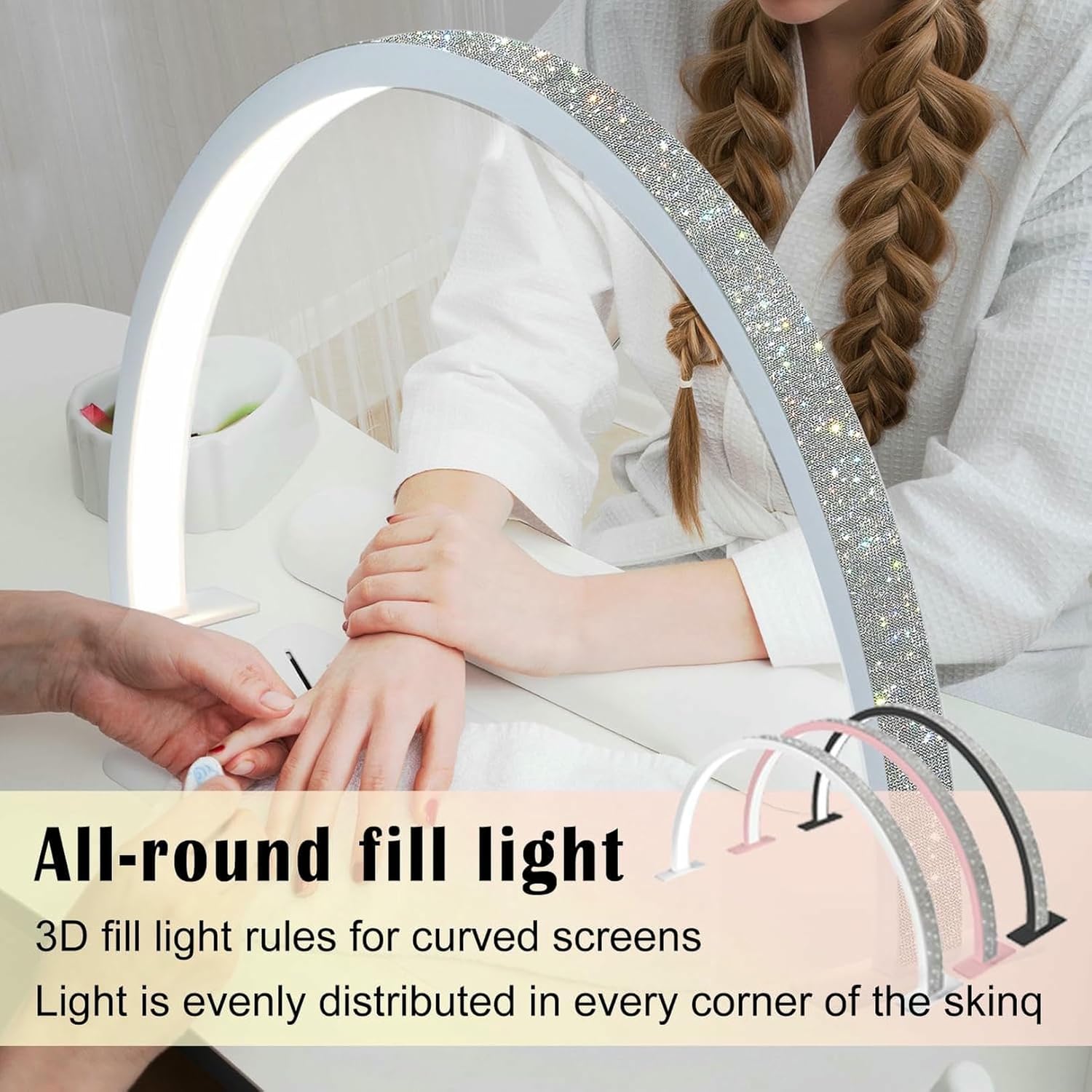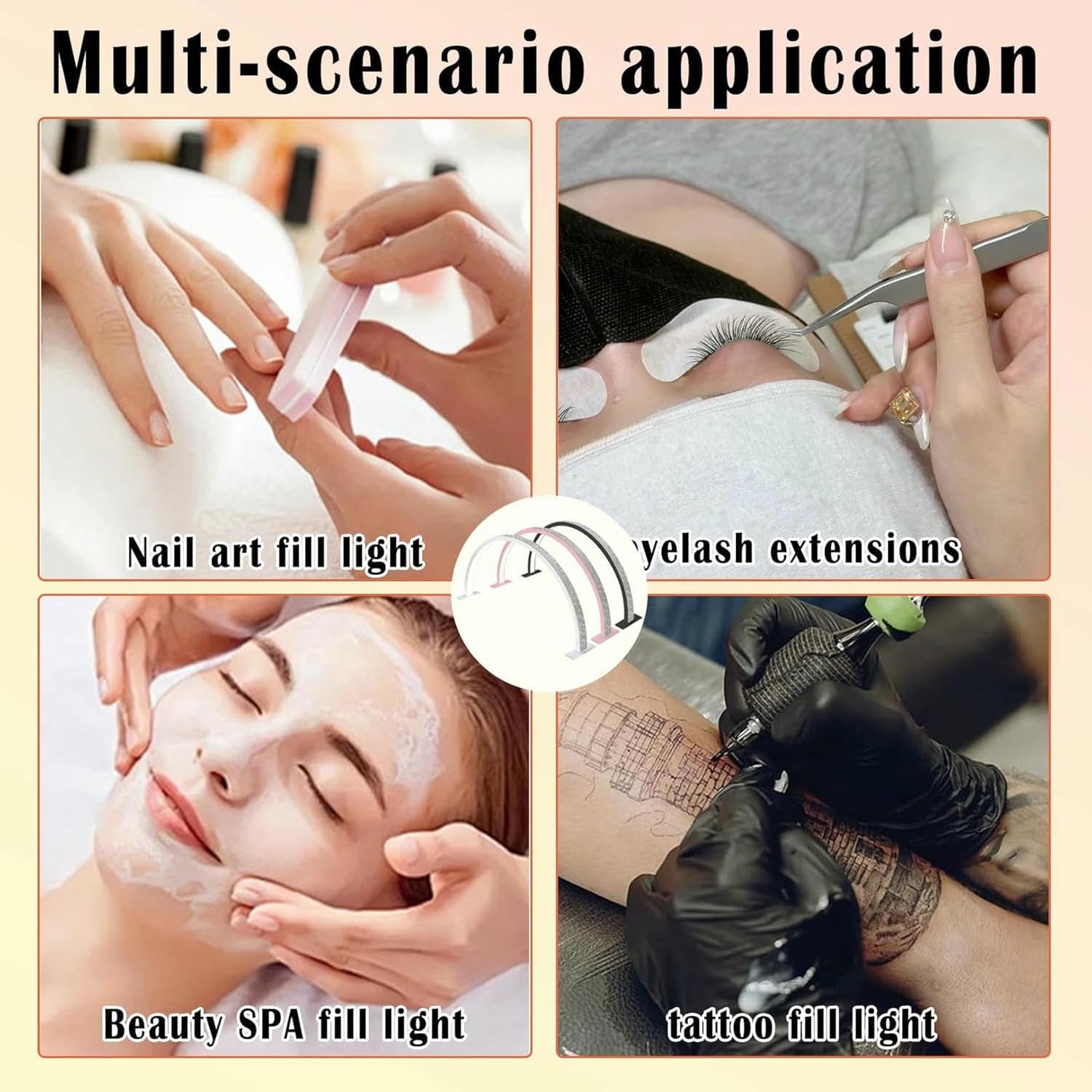 Half Moon Nail Desk LightThe Half Moon Manicure Table Lamp is not only suitable for manicurists, eyelash artists, beauticians, tattoo artists, and skin care professionals, it is an essential tool for beauty salons and is also a perfect gift for female friends and nail art lovers.Product name: Half Moon Manicure Table LampProduct color: black, pink, whiteProduct Material: aluminum + iron basePower/Voltage: 39W/110-220VLED Lamp beads: 364 pcsProduct size:75cm/29.5inPackaging size: 79.5*41*7.5cmSingle weight:1.96KGLight mode: cold light, warm light, cold and warm lightPackage: 1*adapter, 1*light body, 2*base, 1*screwdriver