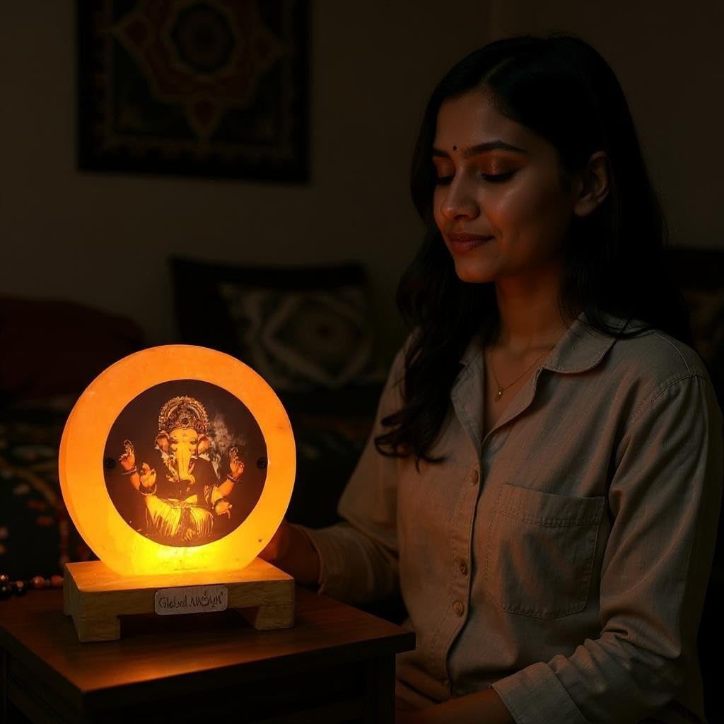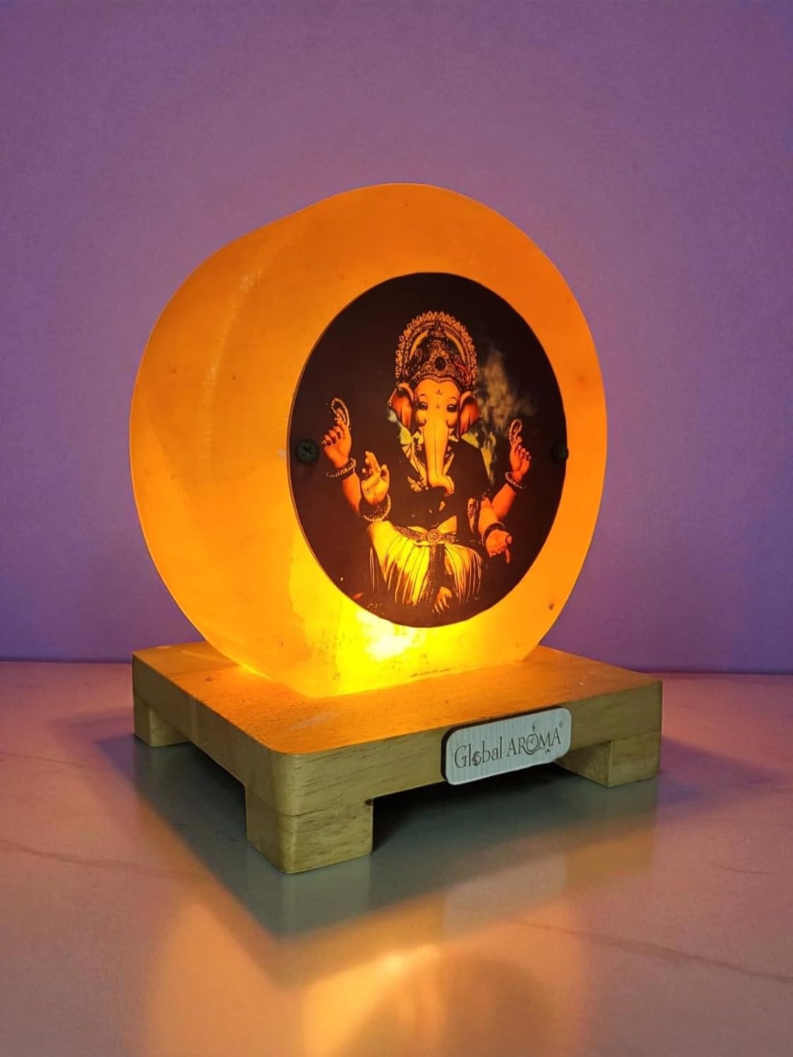 Product description Experience peace with Global AROMA's stunning Himalayan 3D Salt Lamp. Hand-carved from genuine pink salt, it casts a warm, soothing orange glow. The distinctive design/natural uncrafted lamp, with its meditating silhouette and radiating lines, brings artistic tranquility to any room. Perched on a sturdy wooden base, it's a naturally beautiful source of calming light Manufacturer Contact Information Customer Care No.9811044394