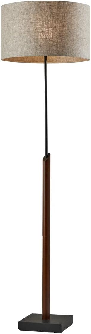 Crafted from walnut wood and black metals, the Ethan Arc Lamp is a versatile mid-century modern style that looks good in any space. A natural textured fabric shade balances out the look, with a white fabric round diffuser to ensure evenly distributed light. Set this lamp to hang over the couch or living area for stylish, overhead lighting. A black fabric covered cord comes out elegantly from the base. Bulb is not included.