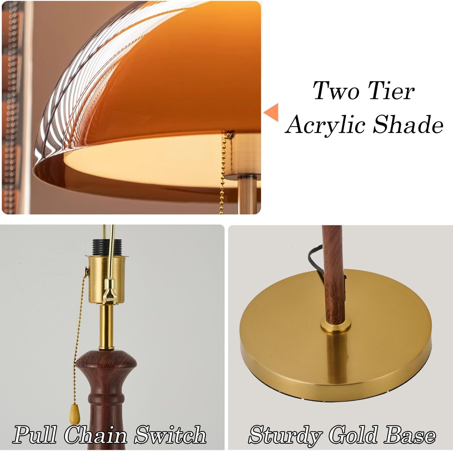 Product Description Color : Orange Wattage: 30W Voltage: 110V-120V Materials : Wood+Metal Type : Floor Lamp Dimensions Fixture Weight: 13.2 lb(6kg) Shade Diameter: 13.77"(35cm) Fixture Height: 60.23"(153cm) Base Diameter: 11.81"(30cm) Bulb Information Dimmable:Yes Bulb Base:E26*1 Consumer Service The warranty period of the product is 24 months.If you are not satisfied with your purchase, please feel free to contact us. We offer you an excellent after-sale service. As your satisfaction is our priority, we are committed to making it right for you.