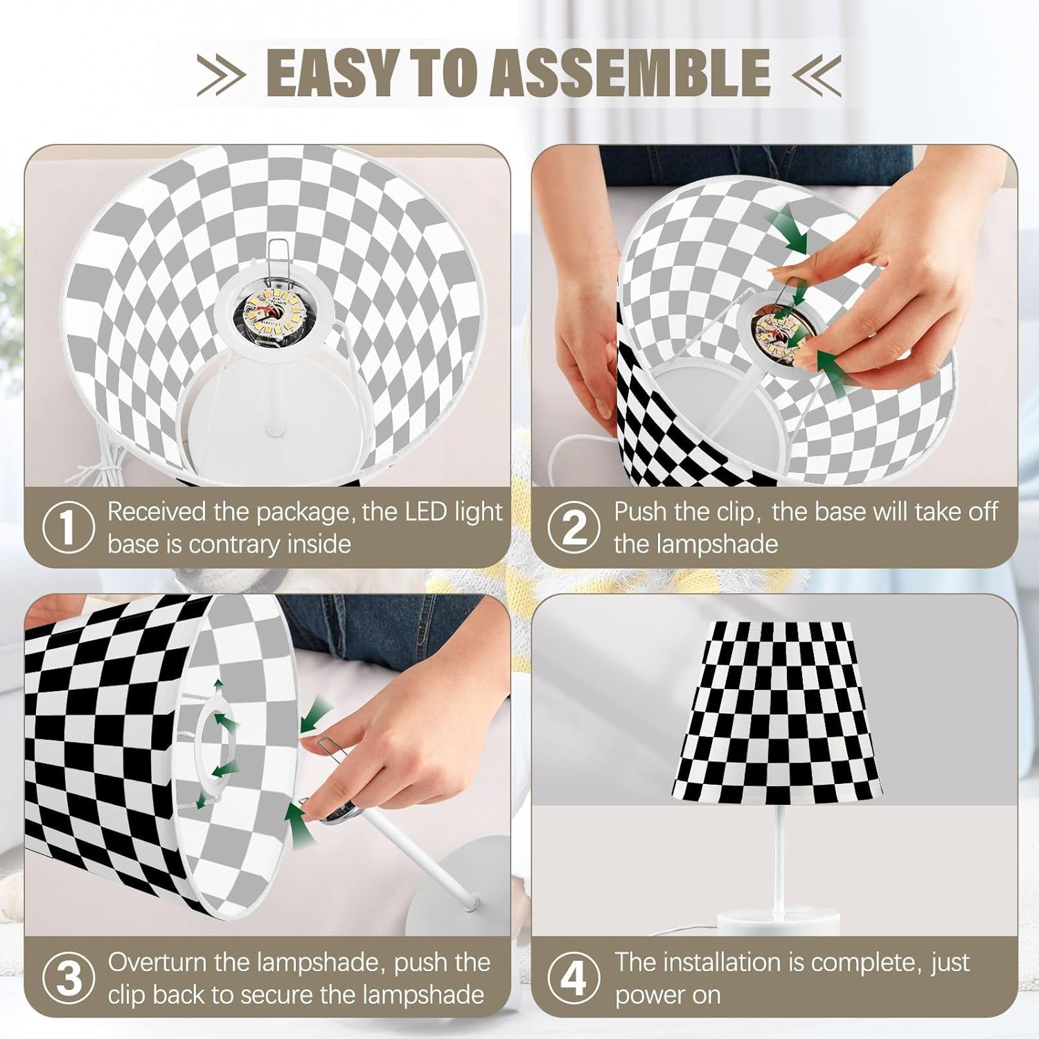 ALAZA Farmhouse Table Lamp for Bedroom, 3-Way Dimmable Table Lamp with Fabric Shade, Beside Lamps Modern Nightstand Lamp with USB Port for Home Desk Bedroom Kids Room Living Room Office Dorm Two Size: Small Desk Reading Lamp: 15(lampshade's diameter)X27.5cm/5.9X10.8in, line length 1.3m Large Desk Reading Lamp: 20(lampshade's diameter)X30cm/7.9X11.8in, line length 1.3m Material Linen fabric (lampshade)+LED light (without bulb) with base+USB button cable (non removable) Can used in bedrooms, guest rooms, living rooms, study rooms, boys and girls rooms, offices, desks, etc.【Instructions guide】 The received product lamp holder and lampshade are installed in reverse, so it is necessary to separate the lamp holder and lampshade first. Press and hold the center buckle to separate the lamp holder and lampshade. Place the lampshade in the positive direction, press and hold the center buckle, and install it completely into the circular ring. Connect the USB to the power supply and control the button switch.