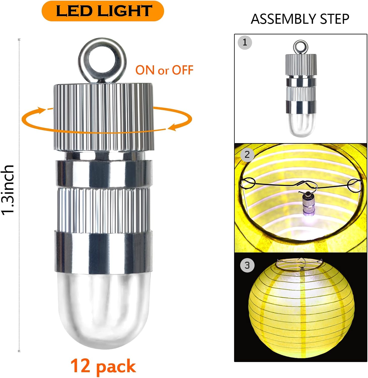 Vibrant colors reusable party paper lantern.The lanterns are hand-made with quality metal frame and eco-friendly paper. You will fully appreciate the amazing craftsmanship when they arrive. Reusable Design A sheet of instruction is included. They are easy to install, fold and safely stored away for next time use. Specifications: Main material: paper + metal Color: yellow paper lanterns Size: 6 inches, 8 inches, 10 inches, 12 inches Package includes: 12 x Paper lanterns 12 x LED lantern lights How to use: 1: Prepare your paper lantern and metal frame, one metal frame matches one paper lantern 2: Put metal frame into lantern in vertical direction 3: Make the lantern propped up 4: Push the raised part of metal frame into ring of lantern when the lantern is totally open 5: Hang the paper lantern with C-hook 6: Here you finished it