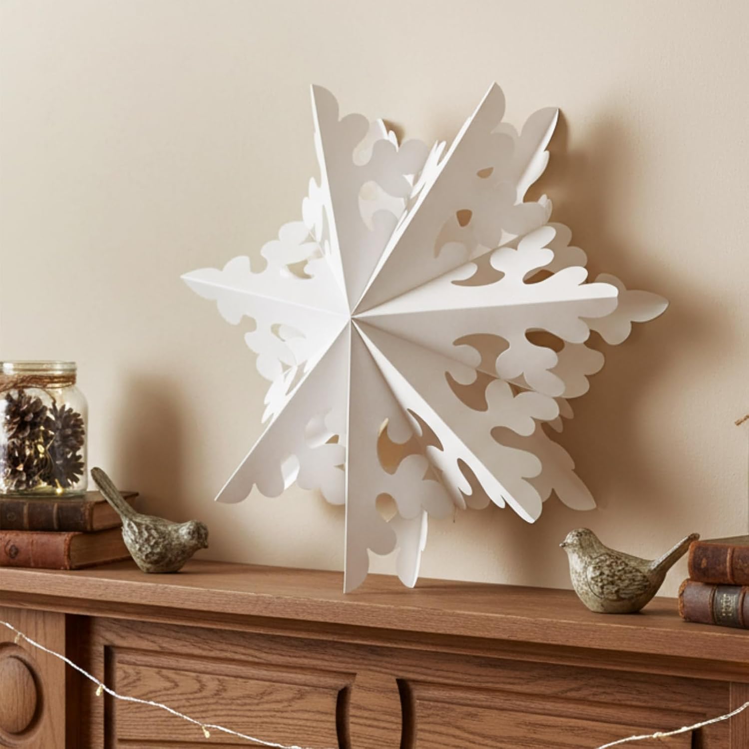 Features: The star shaped decorations can be hung on Christmas trees, wreaths, branches, balconies, ceilings, stores, offices, restaurants, bars and other places, great indoor or outdoor to create a festive atmosphere These 3D hanging snowflakes also make a thoughtful Christmas or winter gift, with Christmas paper snowflake lanterns bringing joy and warmth to friends and family Specifications: Material: paper Color: white Size: 13.8 inch/ 35 cm, 17.7 inch/45 cm, 19.7 inch/ 50 cm Package includes: 8 x Paper Star Lantern Notes: Manual measurement, please allow slight errors on size. The color may exist a slight difference due to different screen displays