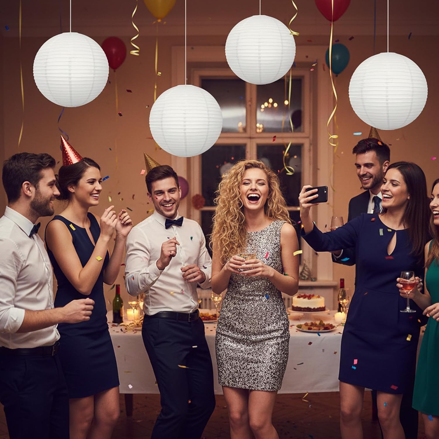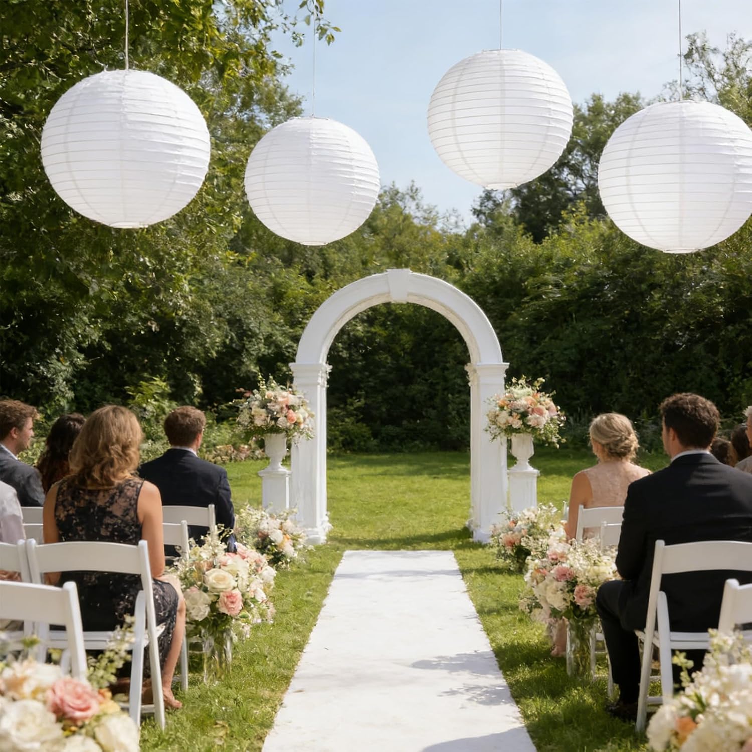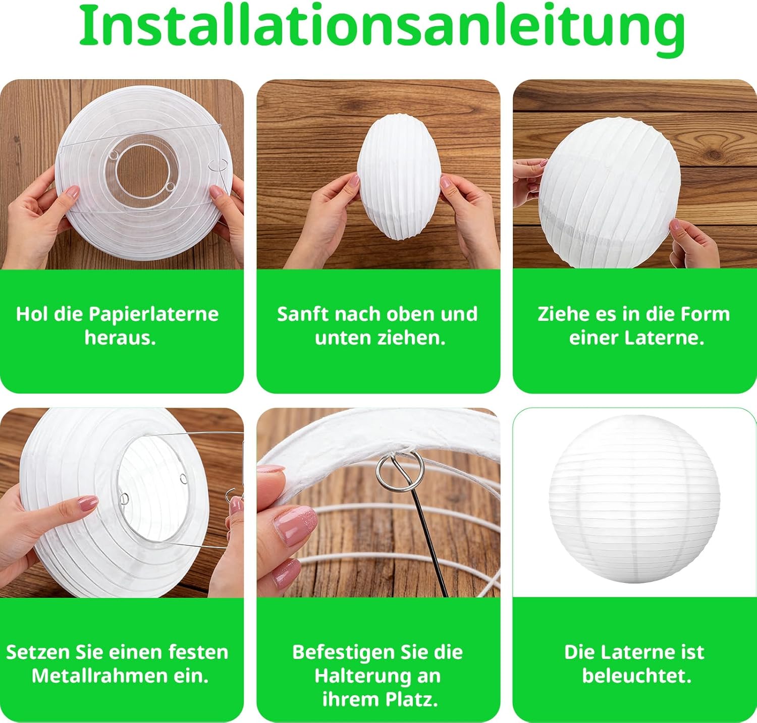 Pack of 4 paper lamps, 20 cm, white, lanterns for DIY projects and event decoration, paper lampshade for festive lighting and home decoration, white lanterns with sturdy metal construction. High-quality lampshade: the paper lampshade is made of robust material with 20 cm diameter; the white colour ensures harmonious light distribution in different rooms; ideal for creative design with personal motifs or texts; easy to install thanks to integrated hanging hook; sturdy construction: the lampshade paper FormstabilstabilPaper lamp; lightweight and foldable design allows space-saving storage; even lighting thanks to diffused light of the lanterns; versatile use at events and in the living area. Wide range of applications: the lanterns white are suitable for wedding decoration and festivals; creates a cosy atmosphere at parties and celebrations; flexible use for spontaneous events; harmonious addition to existing room lighting. Easy to use: lightweight lanterns can be easily transported; easy to install. without special tools Individual lighting selection thanks to separate lamp components; practical solution for regular decoration changes. Aesthetic design: simple design of the paper lampshades matches different interior styles; creates a warm light atmosphere in living and business premises; allows personal touch through individual decoration; supports creative interior design for special occasions