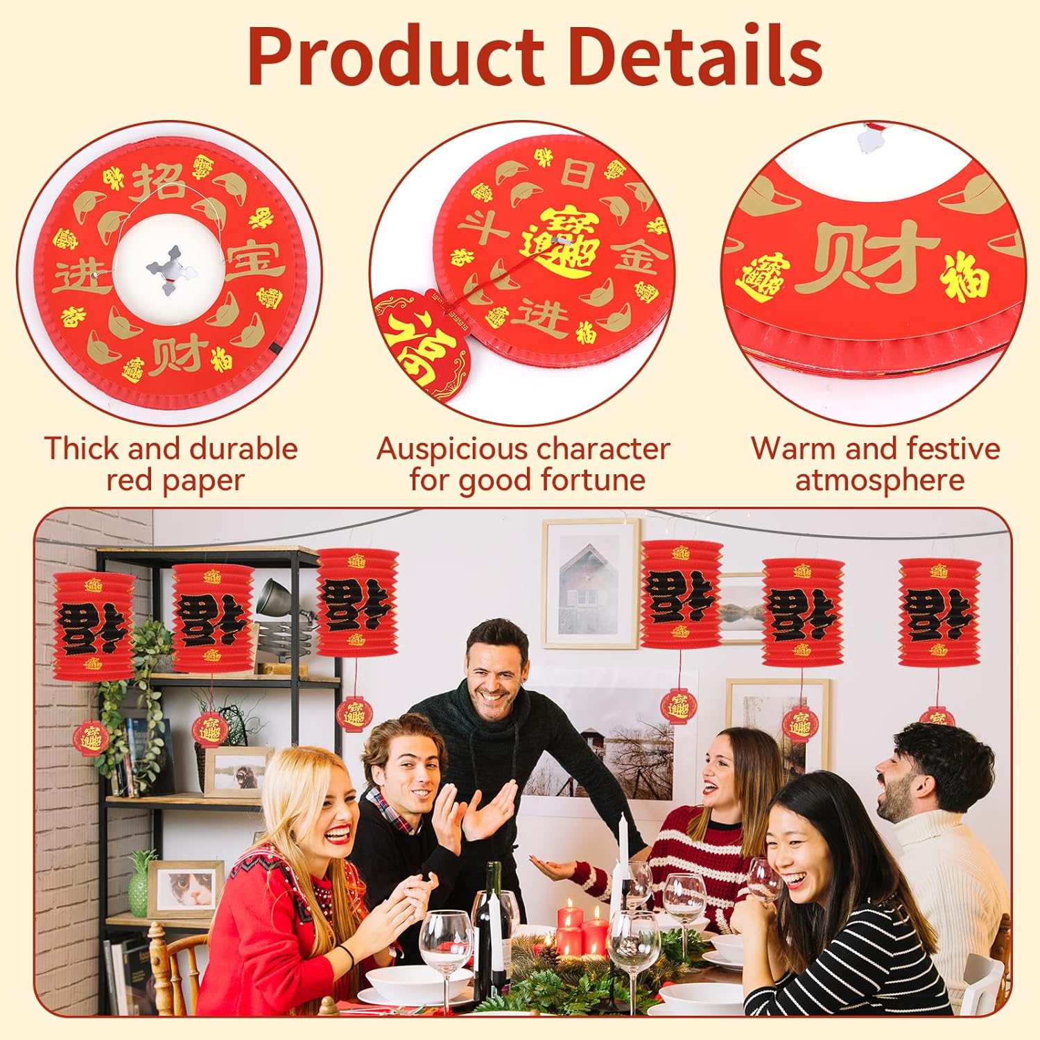We love celebrations, and what better way to brighten them than with festive decorations!These 12PCS Lucky Fu Chinese New Year Lanterns bring joy and tradition to any occasion. Made from vibrant red paper, they create a warm and inviting atmosphere. Perfect for Lunar New Year, birthdays, weddings, baby showers, or Hibachi parties, these lanterns add a touch of cultural charm.Lightweight and easy to hang, they instantly transform any space. The classic Fu character symbolizes good fortune, making them ideal for festive wishes. Whether indoors or outdoors, their bold color and elegant design stand out.Simple to assemble and reusable, these lanterns offer hassle-free decorating. Durable yet delicate, they balance beauty and practicality. A must-have for anyone who loves lively, meaningful celebrations.