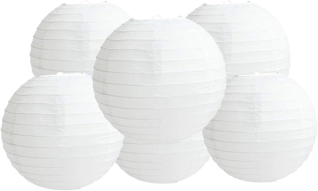 Beautiful bright colored round paper lanterns / Lampshades available in eight vibrant colors and nine sizes of 4", 6", 8",10", 12", 14", 16" 18". Very easy to assemble and hang for party decorations and /or as a permanent lampshade. These high quality paper lanterns are the perfect choice for decorating parties indoors or outdoors. They can be hung from the ceilings, tent tops, tree branches, etc. They come flat packed and all you need to do is to pull the two ends gently open and insert the metal frame (included in the pack) inside the lantern so it keeps its shape. Suitable for use and reuse for indoor and outdoor parties (weather permitting). Can be used to decorate birthday parties, engagement or wedding parties, anniversaries, valentine parties, Bridal or baby showers, farewell parties. They can also be used to decorate, home, office, daycare and school, store, and more.