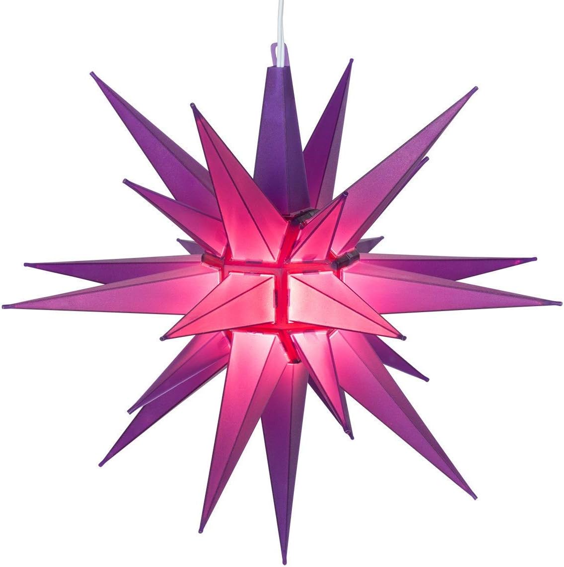 Brightly shining stars in the night are sure to attract guests eyes! Illuminate the night sky with amber Moravian stars. Spanning 14", each star is the perfect size to make a statement in trees, on porches and adorning fence lines. Durable plastic encasing an energy efficient LED bulb, Moravian stars are made to last.
