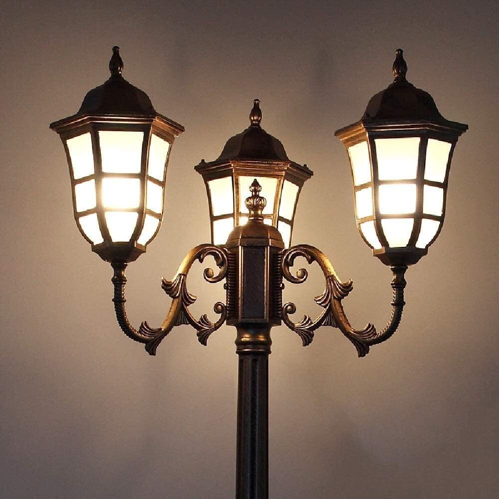 Post Street Light Lawn Street Light This is a retro style waterproof outdoor column lamp that can be used in outdoor, villa garden courtyard, street, wall, etc. Item Type: Outdoor Pillar Street Light Features: waterproof, high temperature resistant Style: European, retro, etc. Material: die-cast aluminum + glass Size: you can refer to the dimension drawings Colour: Bronze. Light source: E27 Number of light sources: 3 (not included) Light source type: incandescent lamp, lamp, LED lamp - Power: 0w-60w Irradiation Area: 8㎡-20㎡ Suitable for: gardens, courtyards, parks, corridors, mansions, outdoors, etc. Package: Lantern x 1.